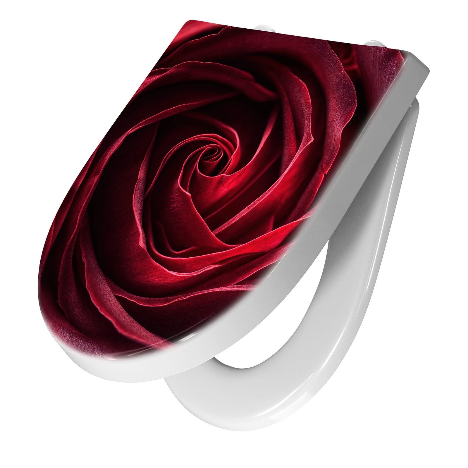 Ein besonderes Highlight ist das brillante Motiv Rose Makroaufnahme, das per UV-Direktdruck auf den WC-Deckel aufgebracht ist. Diese langlebige Drucktechnik sorgt für eine kratzfeste, farbintensive Oberfläche, die auch nach häufigem Gebrauch optisch überzeugt. Dank unserer großen Auswahl an Motiven setzen Sie mit jedem Sitz ein individuelles Design-Statement im Bad.