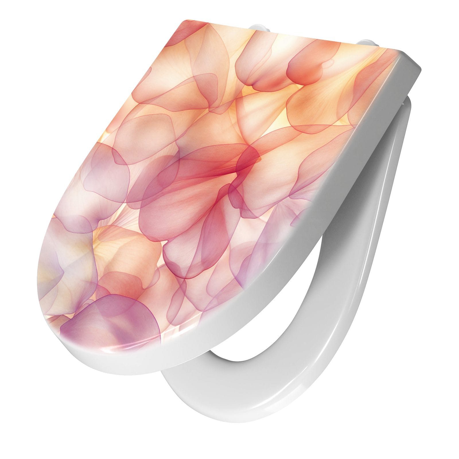 Ein besonderes Highlight ist das brillante Motiv Zarte Blütenblätter, das per UV-Direktdruck auf den WC-Deckel aufgebracht ist. Diese langlebige Drucktechnik sorgt für eine kratzfeste, farbintensive Oberfläche, die auch nach häufigem Gebrauch optisch überzeugt. Dank unserer großen Auswahl an Motiven setzen Sie mit jedem Sitz ein individuelles Design-Statement im Bad.