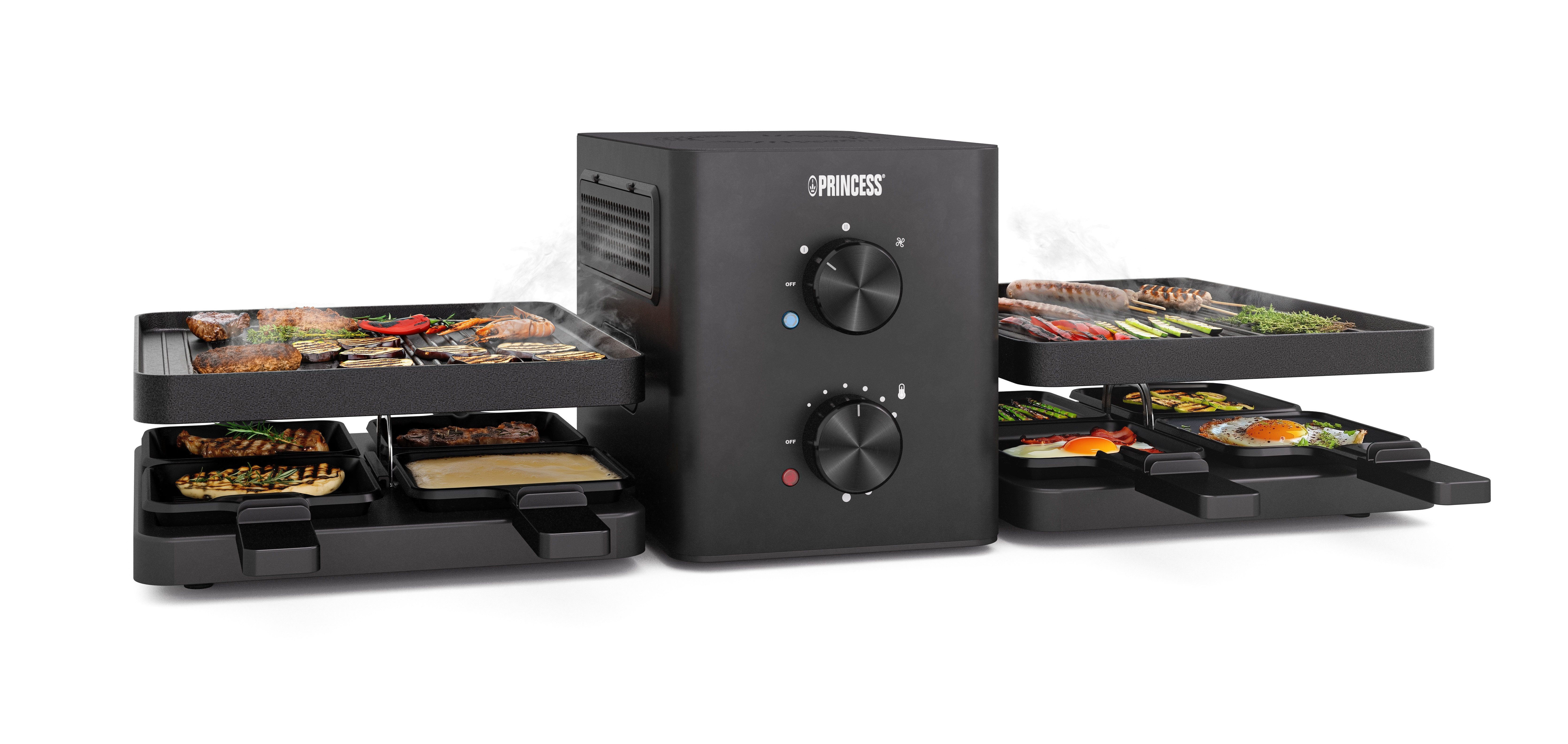 Genießen Sie ein gemütliches Essen, ohne dass lästige Gerüche zurückbleiben? Mit dem neuen Princess 162660 Raclette Purify, das mit einem integrierten Luftfiltersystem ausgestattet ist, wird das möglich! Dieses innovative Raclette ist das erste seiner Art, das ein integriertes Luftreinigungssystem besitzt, damit Sie einen geselligen Abend beim Gourmet-Essen verbringen können, ohne dass unerwünschte Gerüche Ihr Zuhause belasten. Mit Platz für 8 Personen und praktischen, abnehmbaren Teilen ist das Raclette Purify ideal für große Gruppen und nimmt wenig Stauraum ein.