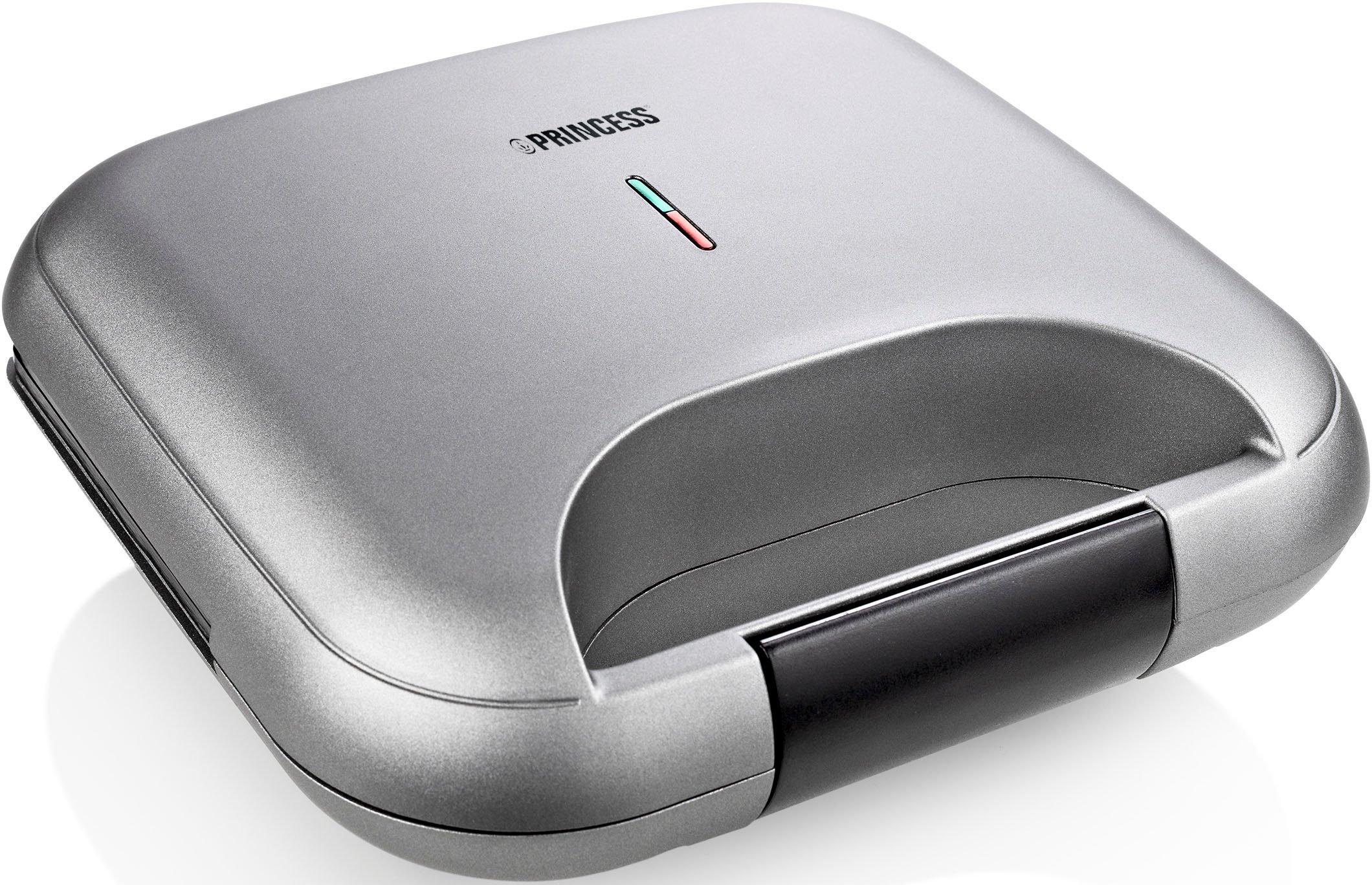 Top-Features | Die hochwertige Antihaftbeschichtung auf den Innenflächen sorgt dafür, dass Ihr Toast außen perfekt kross wird und eine warme Schmelzfüllung hat. Wählen Sie die klassische Schinken-Käse-Füllung oder experimentieren Sie mit Ihren bevorzugten Geschmacksrichtungen. Dank 750 W Leistung heizt sich der Princess Sandwich-Toaster im Nu auf. Anhand der Kontrolllampe können Sie sofort sehen, wenn der Sandwich-Toaster bereit ist. Danach brauchen Sie nur noch wenige Minuten auf den Toastgenuss zu warten. |