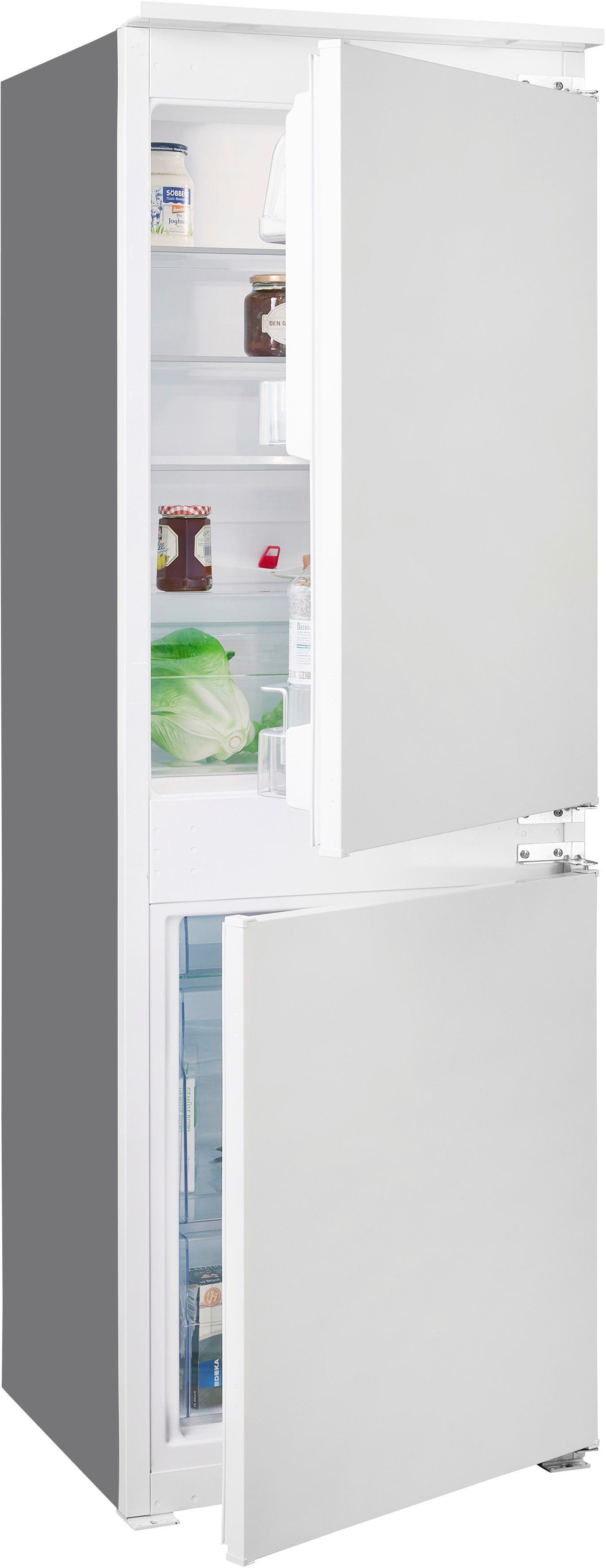Die integrierbare Einbaukühlgefrierkombination »PCI 16S2« ist von der Marke Privileg. Ausreichend Platz bietet das 54 x 157,6 x 54,5 cm (B/H/T) große Gerät mit seinen 79 l Gefriervolumen und 153 l Kühlvolumen. Das Modell arbeitet mit einem Betriebsgeräusch von 35 dB. Drei Gefrierschubladen stehen zur Verfügung, um den Einkauf zu verstauen. Die vier Ablageflächen bieten viel Platz für Lebensmittel. Zusätzliche Variabilität bei der Lagerung bieten die drei Türablagen. Dank der LED-Innenbeleuchtung findet man außerdem immer schnell, wonach man sucht. Wer auf der Suche ist nach einem Modell, das genug Raum für Nahrungsmittel bietet, der trifft mit der »PCI 16S2« von Privileg eine gute Wahl.
