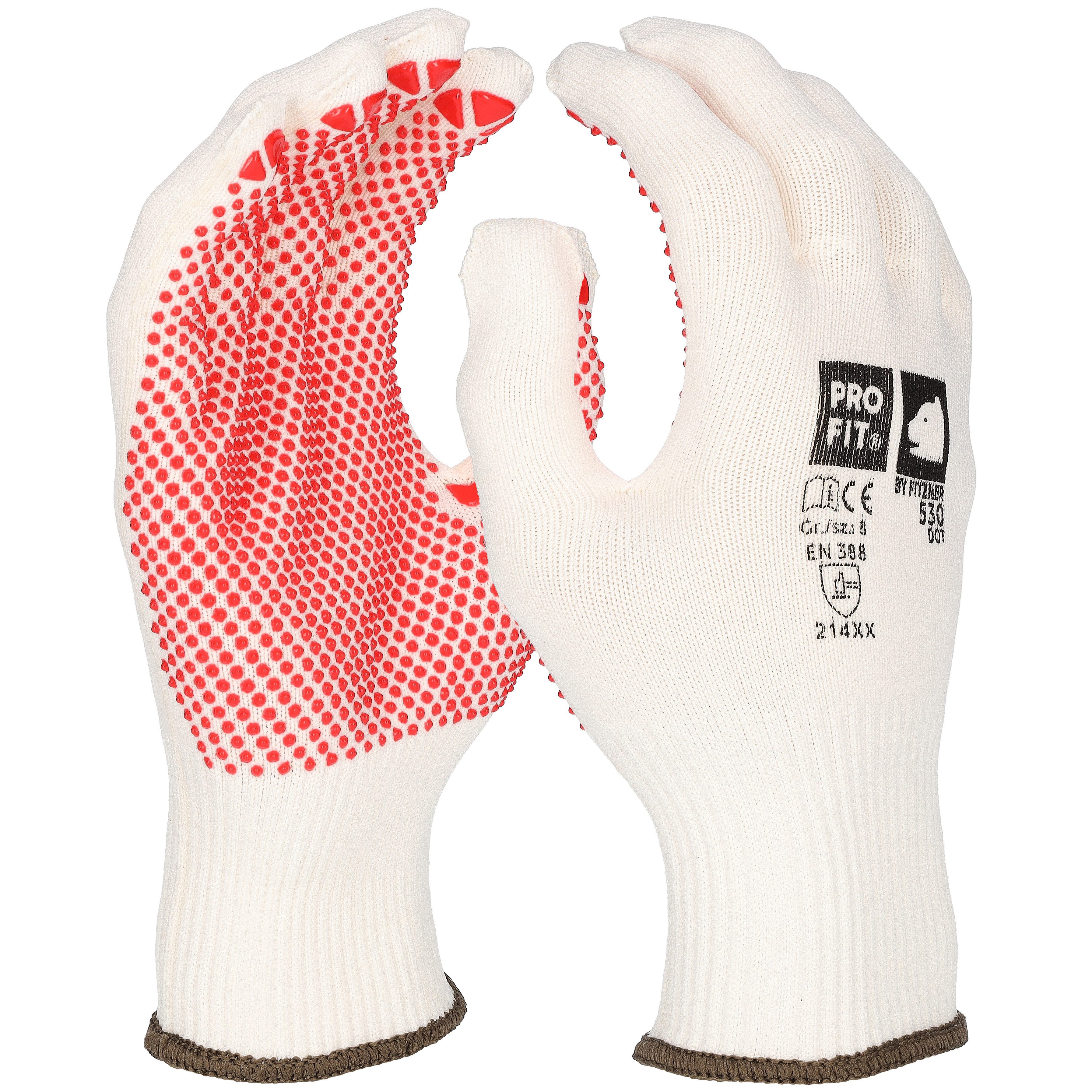 FEIN GESTRICKT: Baumwoll-Polyamid-Feinstrickhandschuhe mit einseitig aufgebrachten roten Vinyl-Noppen.
