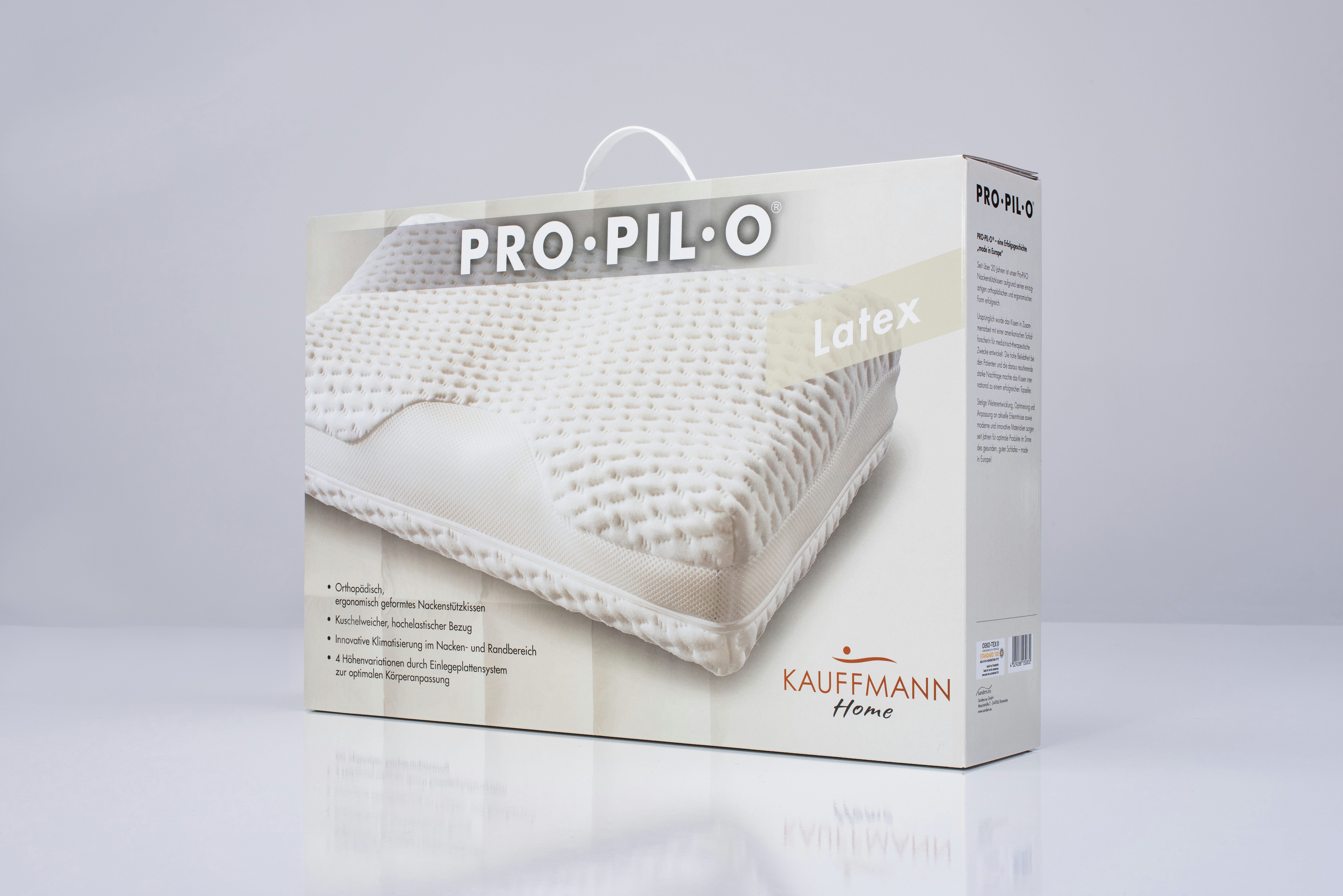 Entspannt schlafen - erholt aufwachen. Die Aufgabe, die Halswirbelsäule zu stützen, kann nur ein anatomisch richtig geformtes Nackenstützkissen erfüllen. Dank seiner orthopädisch optimalen Form liegen Sie mit Pro-Pil-O® immer richtig: Die Halswirbelsäule wird dauerhaft entlastet, die Nacken- und Schultermuskulatur kann entspannen. Diese Vorteile machen sich auch Reha-Kliniken zunutze. Dort wird Pro-Pil-O® zu Therapiezwecken eingesetzt. Der ständig weiterentwickelte, orthopädisch geformte Kern sorgt durch seine besondere Schnitttechnik für Druckentlastung der Muskeln und Halswirbel. Die dadurch entstandene Konturoberfläche leitet Feuchtigkeit und überschüssige Wärme in alle Richtungen ab. Der kuschelweiche, hochelastische Bezug sorgt für optimale Übertragung der Kernelastizität und Formgebung und bietet einen hohen Liege- und Klimakomfort.