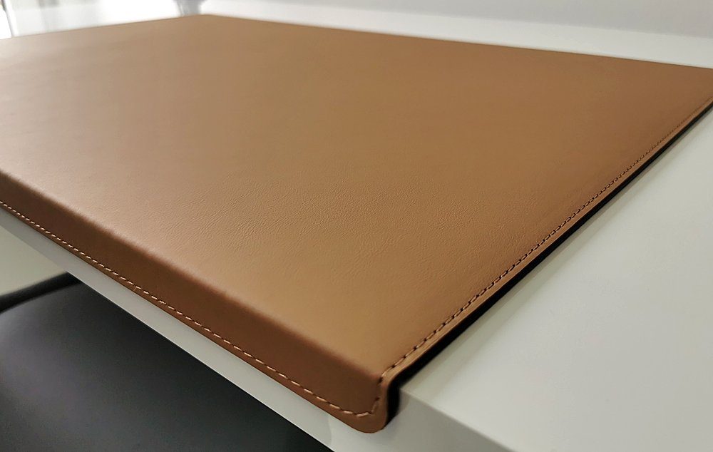 Profi Mats Schreibtischunterlage Gewinkelt mit Kantenschutz Echt Leder 60 x 38 Beige