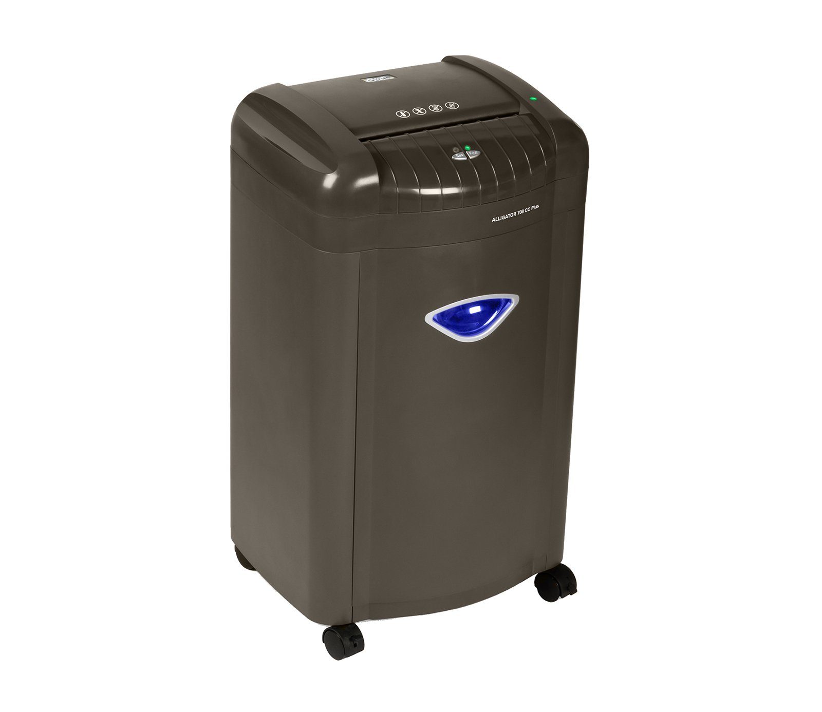Die Alligator Serie, entwickelt für das kleine und auch größere Büro, wurde mit einem modernen Design und einer Top Technik ausgestattet. Der Alligator 707 CC ist für die Benutzung von 1-5 Personen im Büro gedacht. Der Aktenvernichter vernichtet bis zu 7 Blatt mit einer Grammatur von 80g/m², geheftet oder nicht geheftet. Das geschredderte Papier wird in 2 x 9 mm kleine Partikel geschnitten. Die maximale Einsatzzeit am Stück beträgt non-stop 10 Minuten. Danach muss er 40 Minuten lang abkühlen. Er ist sehr leise während seiner Aktivität. Wir bezeichnen sein geräuscharmes Arbeiten als Wisper Technology. Der Geräuschpegel beträgt maximal 65 dB. Die Papierkorbkapazität beträgt 26 Liter. Der Papierkorb ist beleuchtet, so können Sie jederzeit sehen, wann der Papierkorb voll ist.