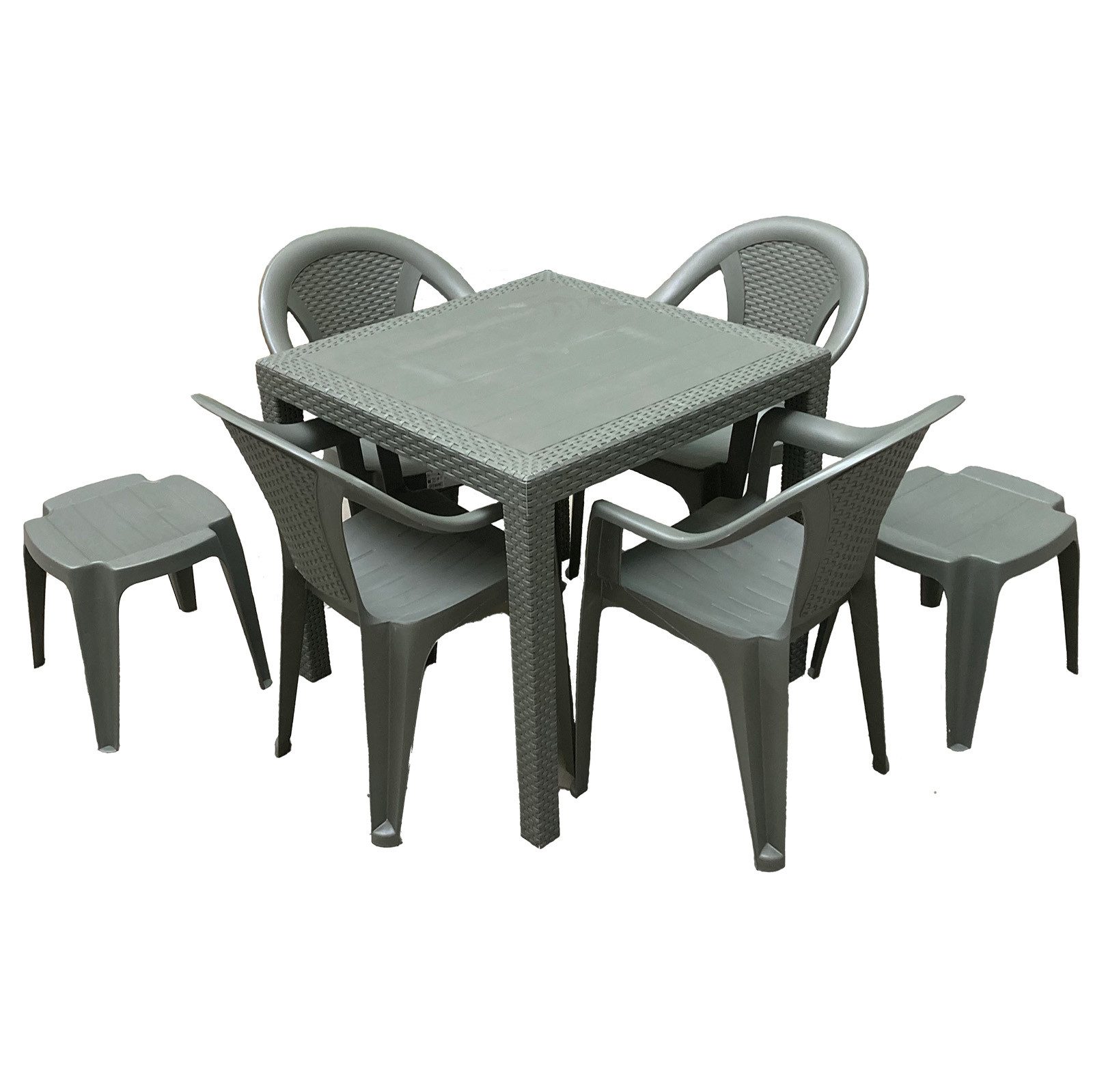 Set beinhaltet | 1 Tisch, 4 Stühle, 2 Hocker |
