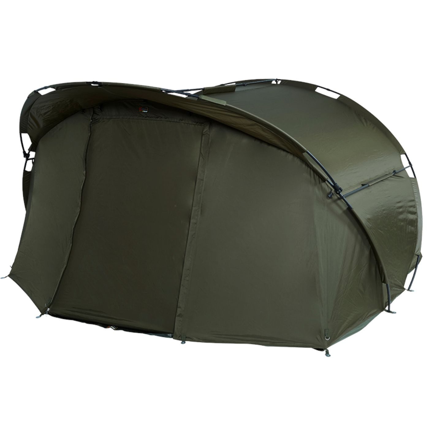 Prologic C-Series Bivvy 2 Man 305x300x155cm - Das Zwei-Mann-Bivvy der C-Serie besteht aus einem sehr stabilen und leicht faltbaren Zwei-Rippen-Rahmen und ist eine leichte und einfach aufzubauende Unterkunft, von der Sie nie wussten, dass Sie sie brauchen. Karpfenangler finden im Inneren dank des optimierten Designs reichlich Platz, so dass Sie Ihre Ausrüstung ohne Kompromisse verstauen und organisieren können. Dank der Zwei-Wege-Reißverschlüsse an der Vordertür kann das Bivvy auch als „Beobachtungsposten” verwendet werden, so dass Sie bei schlechtem Wetter auch dann noch Fische beobachten können, wenn Sie im Bivvy festsitzen. In Kombination mit dem großen Belüftungsfenster mit Moskitonetz auf der Rückseite wird der Luftstrom im Inneren des Bivvys erhöht. An lauen Sommertagen und -nächten lassen sich die vorderen Türen und die Seitentüren vollständig öffnen und zurückschieben, so dass Sie einen schönen Panoramablick haben und ein angenehmes Klima herrscht.
