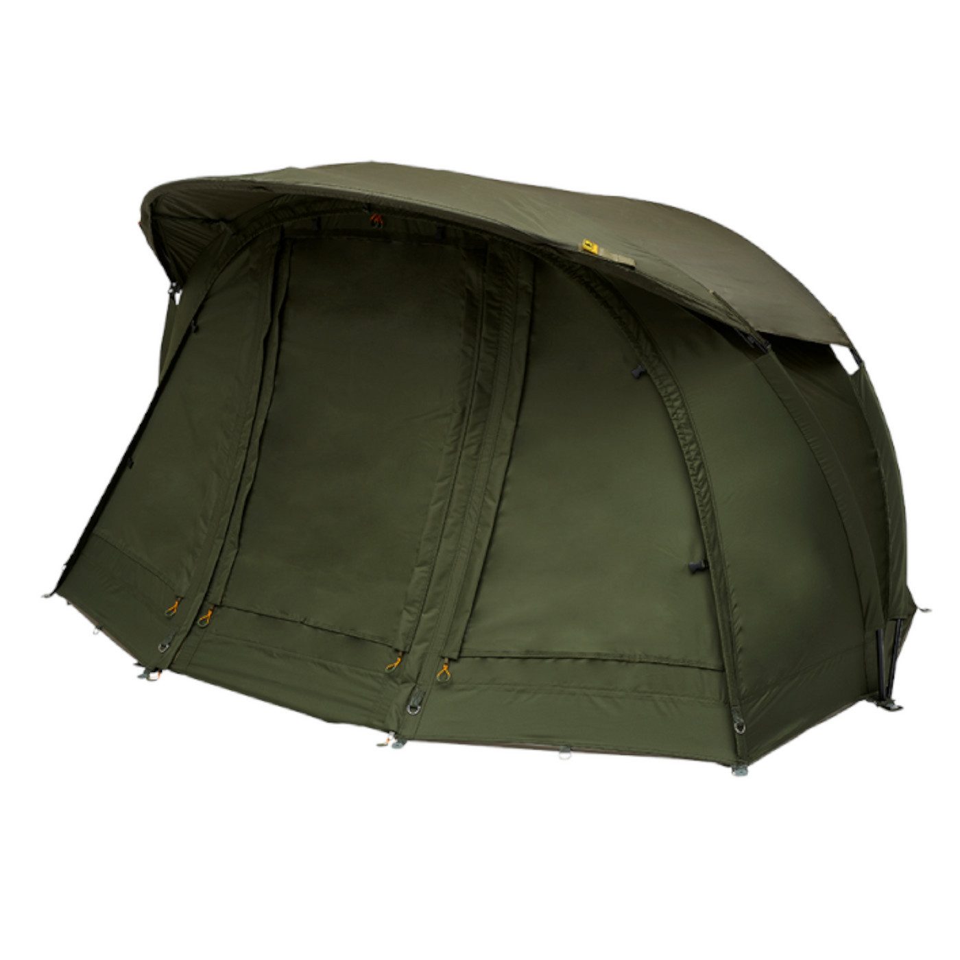 Prologic Inspire Bivvy And Condenser Wrap 135x260x220cm - Die neue Generation von Inspire Bivvys setzt beneidenswerte Maßstäbe für Innovation und Design. Die 2-Rippen-Konstruktion ergibt einen leichten und einfach aufzubauenden Schutz. Beide Versionen verfügen über einen Roll-Up-Peak-Bereich, der sich perfekt für schnelle Sessions bei schönem Wetter eignet, bei denen kein erweiterter Schutz vor dem Peak erforderlich ist. Das Pro-Vent-System wurde durchgehend verwendet - eine große hintere Belüftung und 2 zusätzliche Seitenbelüftungen sorgen für die beste 360-Grad-Belüftung. Dies maximiert den Luftaustausch, reduziert die Kondensation, verbessert den Ausblick und hält in den wärmeren Monaten kühl. Die Pro-Tect-Hochleistungsreißverschlüsse in der Bodenplane verhindern das Eindringen von Insekten oder Wasser, da sie 10 cm über dem Boden verlaufen. Die Inspire Bivvys sind mit unserem neuen, hochmodernen Pro-Tex-Material ausgestattet, das atmungsaktiv, leicht, extrem langlebig und wasserdicht bis 20.000 mm ist. Die abnehmbare Front enthält eine Tür und Fenster aus Mückennetz. Die Front wurde mit zwei Reißverschlüssen ausgestattet, die ein Öffnen im Briefkastenstil und einen besseren Schutz vor den Elementen ermöglichen. Das mit dem 1-Man-Bivvy gelieferte Condensor Wrap und das mit dem 2-Man-Bivvy gelieferte komplette Overwrap wurden aus einem wasserdichten und sehr haltbaren 210D-Stoff hergestellt. Bietet eine Wassersäule von 10.000 mm. In Kombination mit dem Pro-Tex 20.000 mm-Material ergibt sich eine viel höhere Effizienz, weil der interne Bivvy-Raum effektiv atmen kann. Da der Übergang des Luftaustauschs durch das auf den Wickeln verwendete 210D-Gewebe stark reduziert wird. Dies liefert einen viel langsameren und progressiveren Luftaustausch. Dadurch wird die Innenluft dramatisch gegen die Außenluft isoliert, wodurch eine überlegene Isolationsbarriere entsteht. Dieser Prozess reduziert die Bildung von Feuchtigkeit und Kondenswasser erheblich. Das System kann in Verbindung mit dem Pro-Vent-System weiter optimiert werden, indem die Lüftungsschlitze an warmen und nassen Tagen offen gehalten werden.
