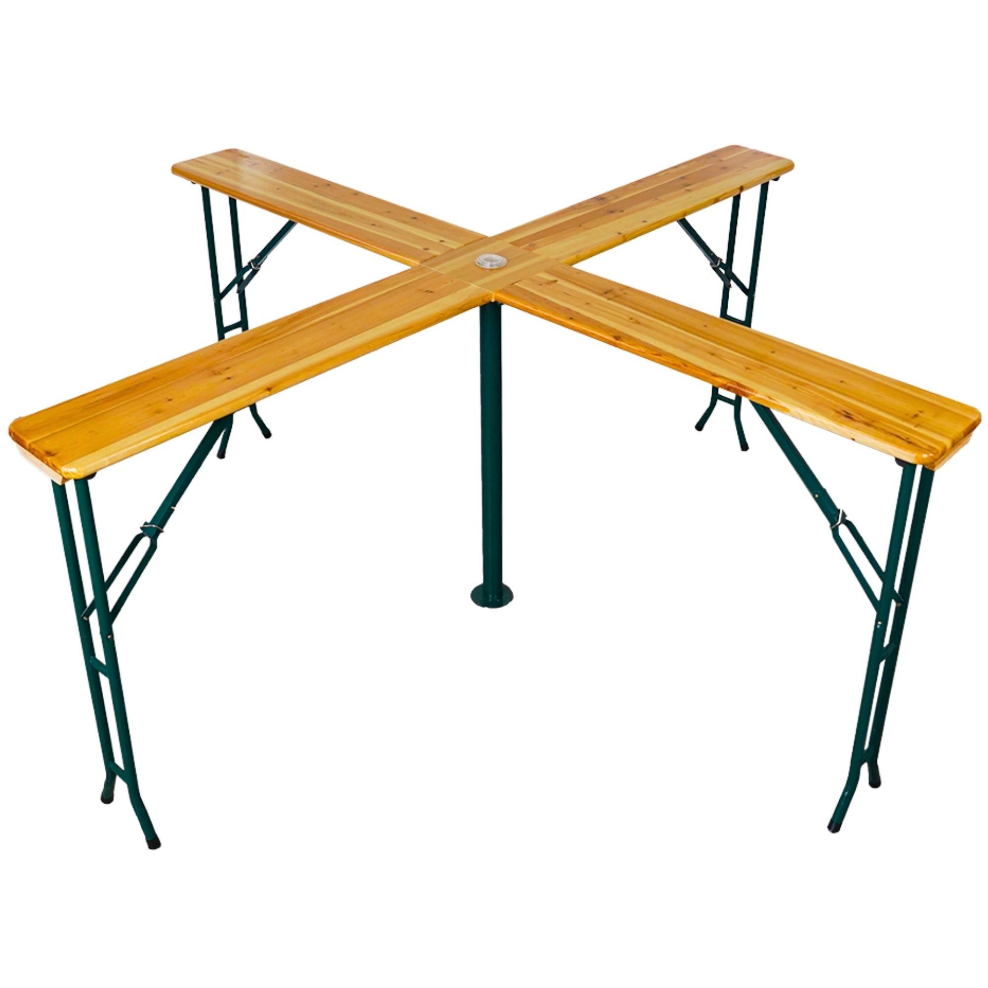 Mit diesem X-förmigen Biertisch erhältst du ein funktionales, platzsparendes und zugleich geselliges Möbelstück, das auf keiner Feier fehlen darf!