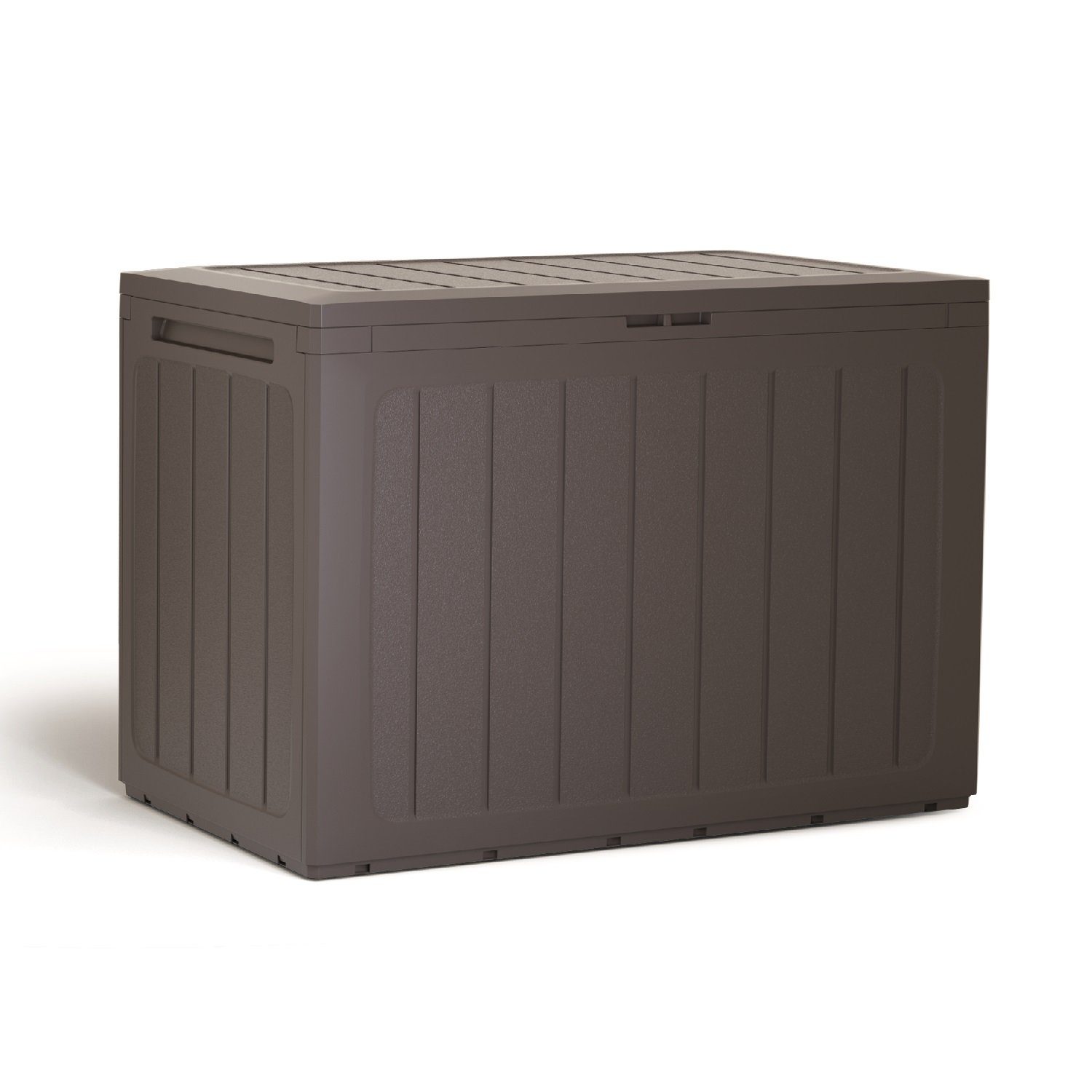 Multifunktionaler Garten-Aufbewahrungsbox Boardebox Die perfekte Lösung, um alle wichtigen Gartenartikel zusammen an einem Ort aufzubewahren. Ideal für die Aufbewahrung von Kissen, Decken, Gartengeräte, kleinere Möbel oder Spielzeug für Kinder. Die integrierte Schleife für das Vorhängeschloss bietet Ihnen die Möglichkeit, Inhalte zu sichern. Praktische Aufbewahrungsbox - Die Leichtbauweise bietet ausreichende Belüftung und Schutz vor Regen. Die Box passt perfekt auf Balkone oder Terrassen.