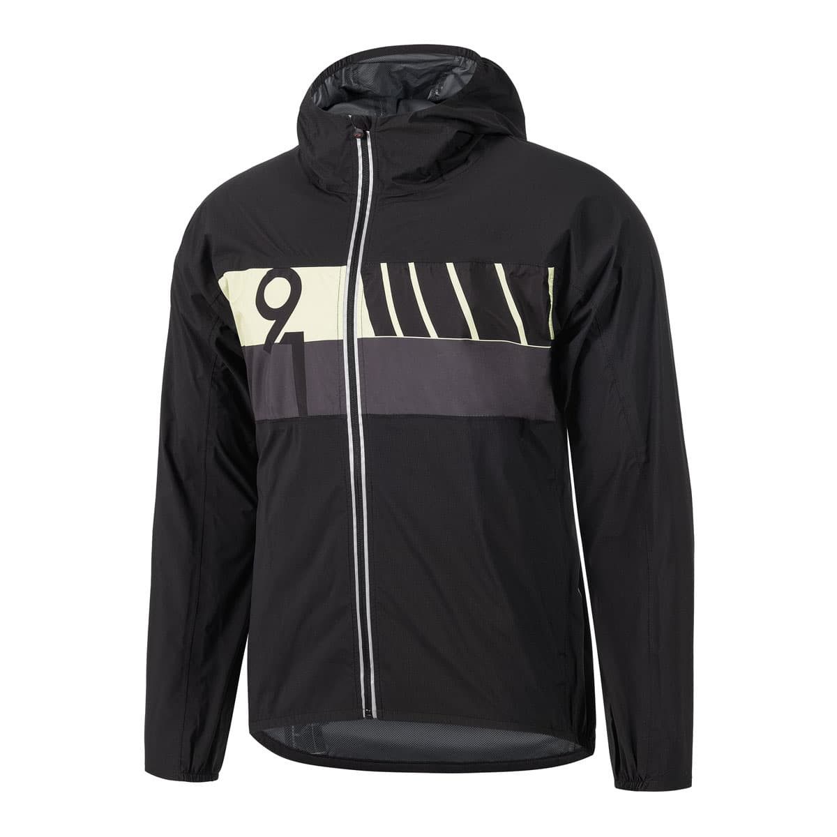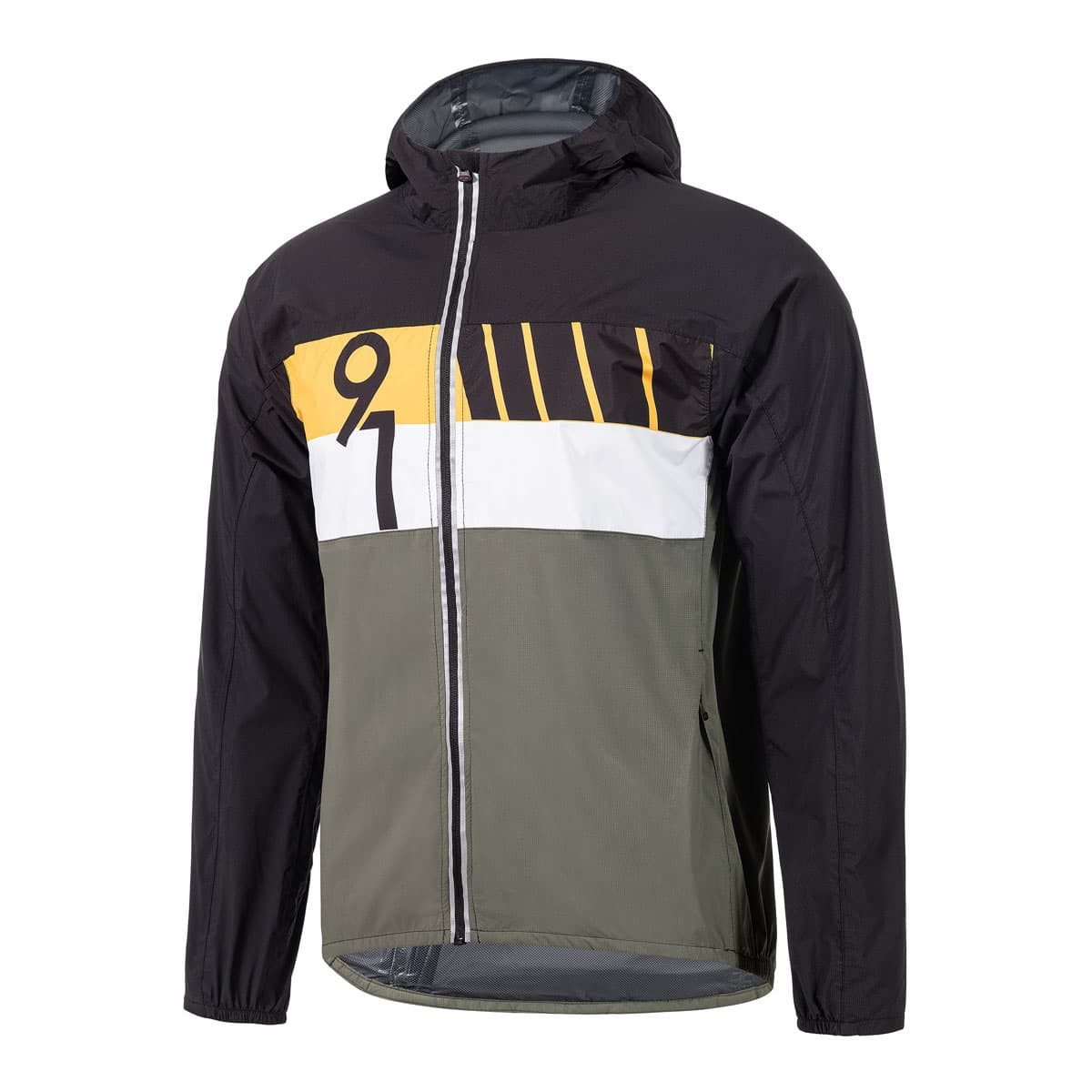 Materialzusammensetzung | Material: 100 % Polyamid, 100 % Polyurethan Einsätze sublimiert: 100 % Polyester, 100 % Polyurethan WP: 10.000 mm I MVP: 10.000 g/m2/24hr |