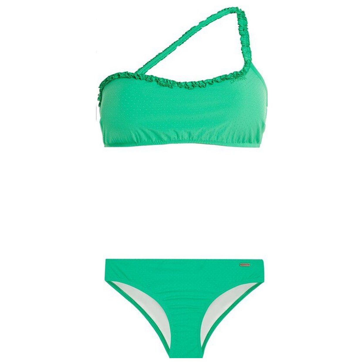 Dieser erstaunliche Ein-Träger-Bikini ist ein echter Blickfang. Die hübschen Rüschen an der Schulter und am Träger verleihen dem Oberteil eine besonders stylishe Note. Befestigen kannst du das Oberteil mit dem Klettverschluss. Die herausnehmbaren, schnell trocknenden Pads bieten extra Support und betonen deine Kurven. Die dazu passende Bikini-Hose hat eine normale Passform und Taille. Aufgrund unserer Bestrebungen, die Эко-товары unserer Kollektionen zu verbessern, wurden bei der Herstellung dieses Bikinis keine PFC verwendet. Der PRTNAHLA von Protest strahlt in diesem Sommer auch am Pool absoluten Style aus.