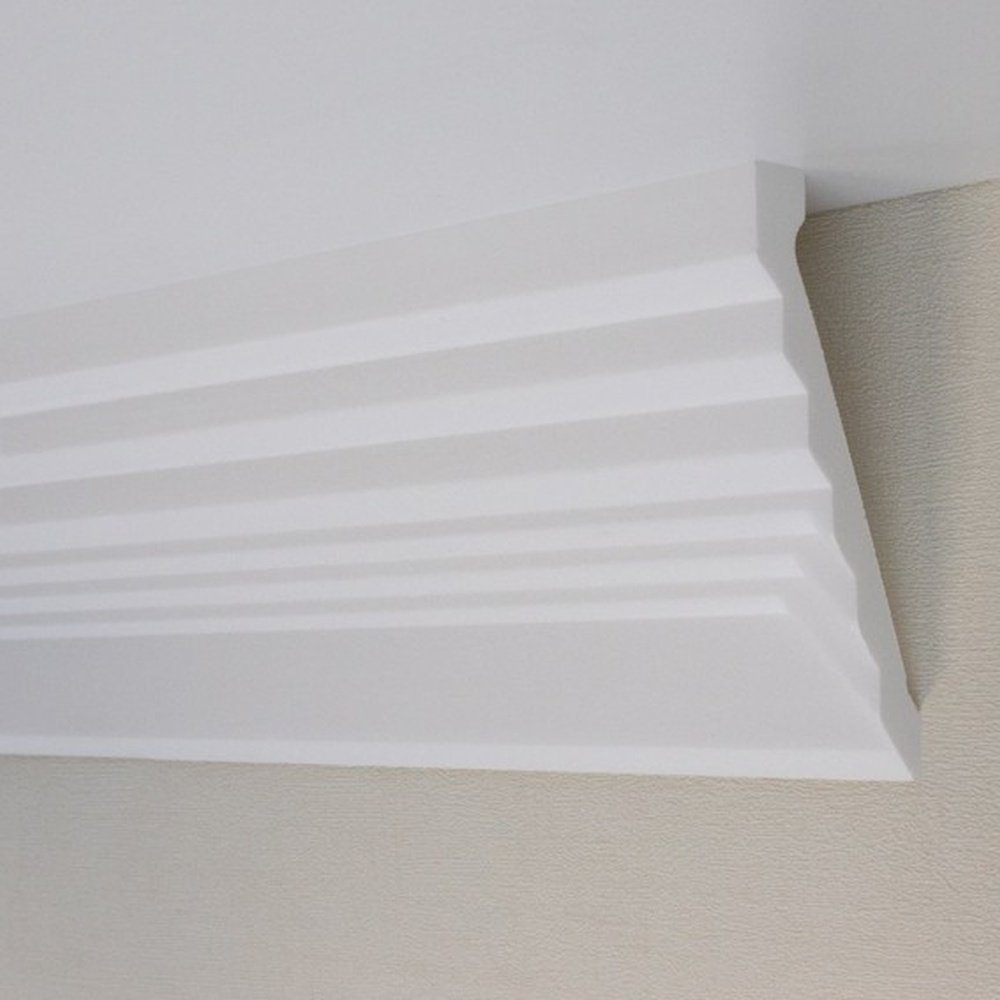 Die Deckenleiste ist bereits vorgrundiert und kann mit je nach Bedarf in Deinem Wunschfarbton überstrichen werden.