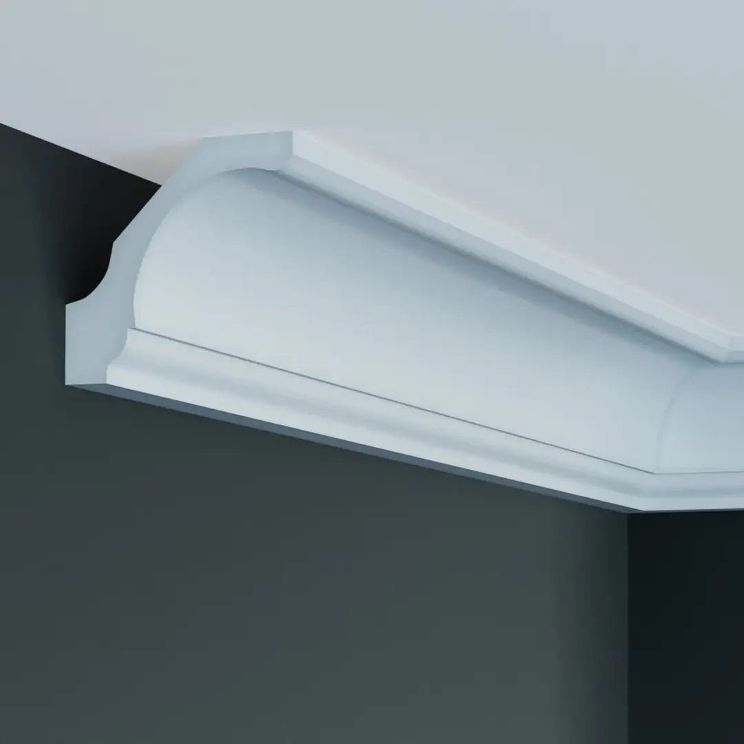 Stuckleiste Polyurethan, 85 x 90 x 2000 mm, Weiß, Deckenleiste