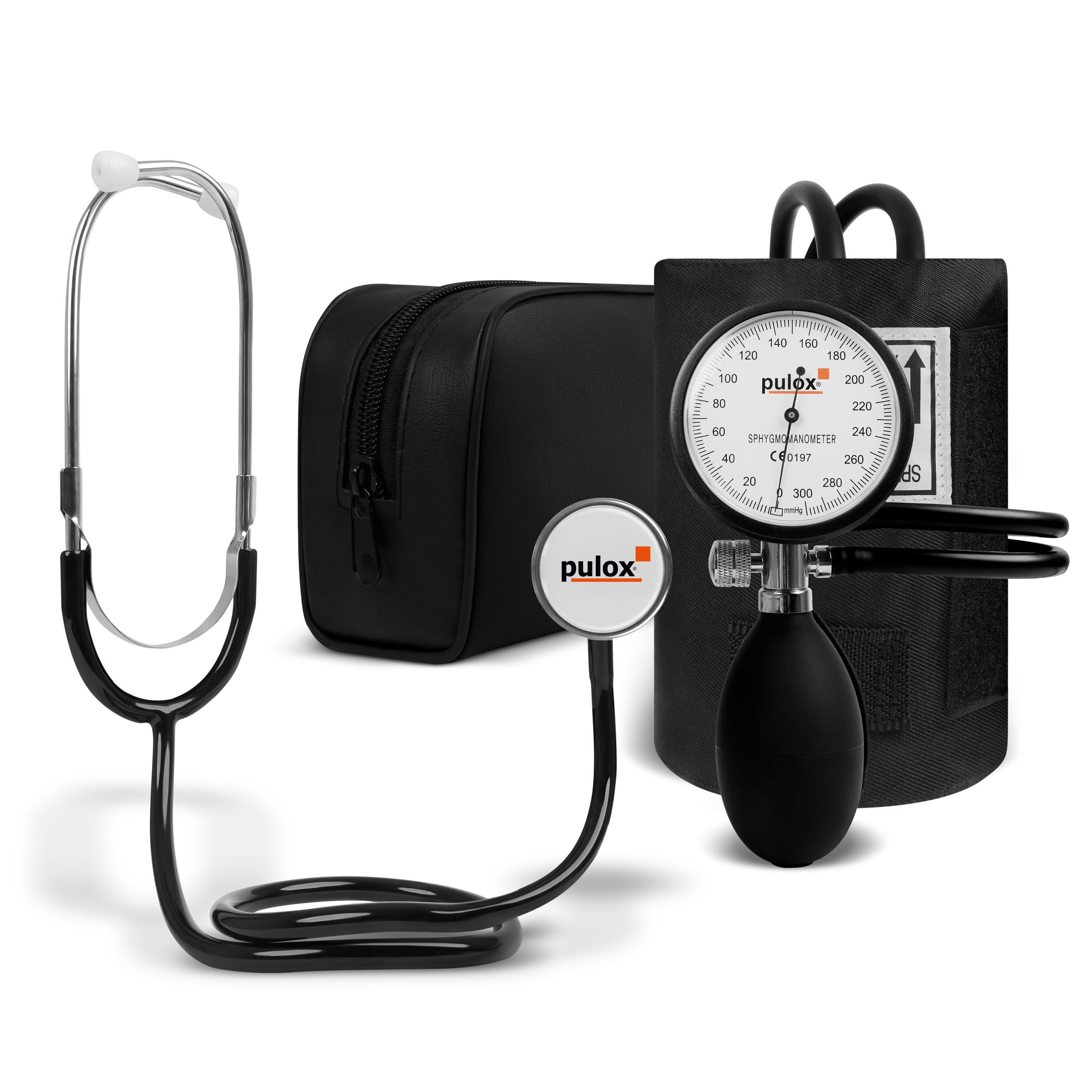 Lieferumfang | Blutdruckmessgerät mit Manschette und Aufbewahrungstasche, Flachkopf-Stethoskop |