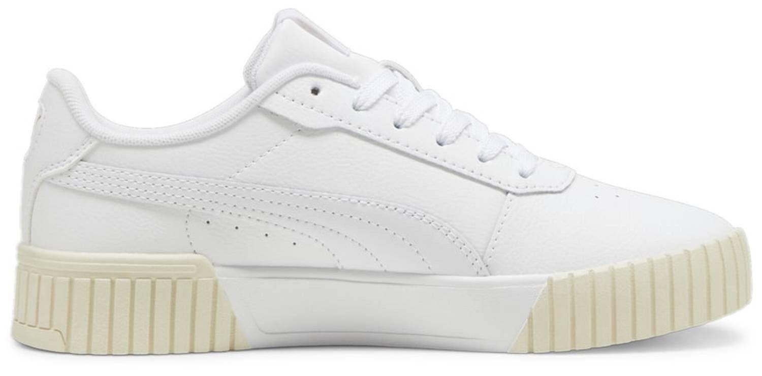 Puma Carina 2.0 White-Gold-Alpine Snow Размер EU 37 - Der Damenschuh aus Leder, Synthetik und einer Sohle aus Gummi. Schöne Sneaker Low mit Innenmaterial aus Textil.Größe | 37 |