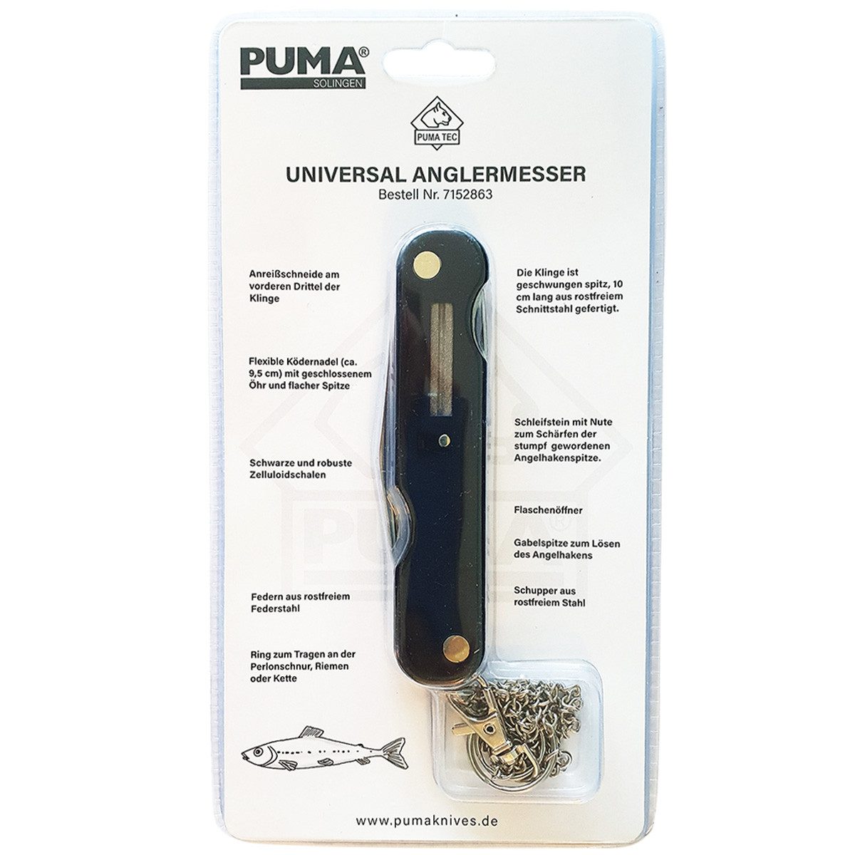 Das Universal-Anglermesser 863 ist ein unverzichtbares Werkzeug für alle Angelfreunde. Mit einer Anreißschneide am vorderen Drittel der 10 cm langen, geschwungen spitz zulaufenden Klinge aus rostfreiem Schnittstahl ist es ideal zum Schneiden zäher, ledriger Fischhaut geeignet. Der Klappmesser-Klassiker mit den Retro-Zelluloid-Griffschalen in Schwarz bietet zudem weitere praktische Funktionen: Entschupper mit Gabelspitze zum Hakenlösen, Schleifstein mit Nute für Angelhaken, Kronkorkenöffner, Ring zum Befestigen einer Kette sowie eine flexible Ködernadel (ca. 112 mm) mit geschlossenem Öhr und flacher Spitze. Die Ködernadel wird sicher in einem Einsteckschlitz in der Griffschale aufbewahrt. Mit diesem vielseitigen Werkzeug haben Angler alles, was sie für einen erfolgreichen Angelausflug benötigen.