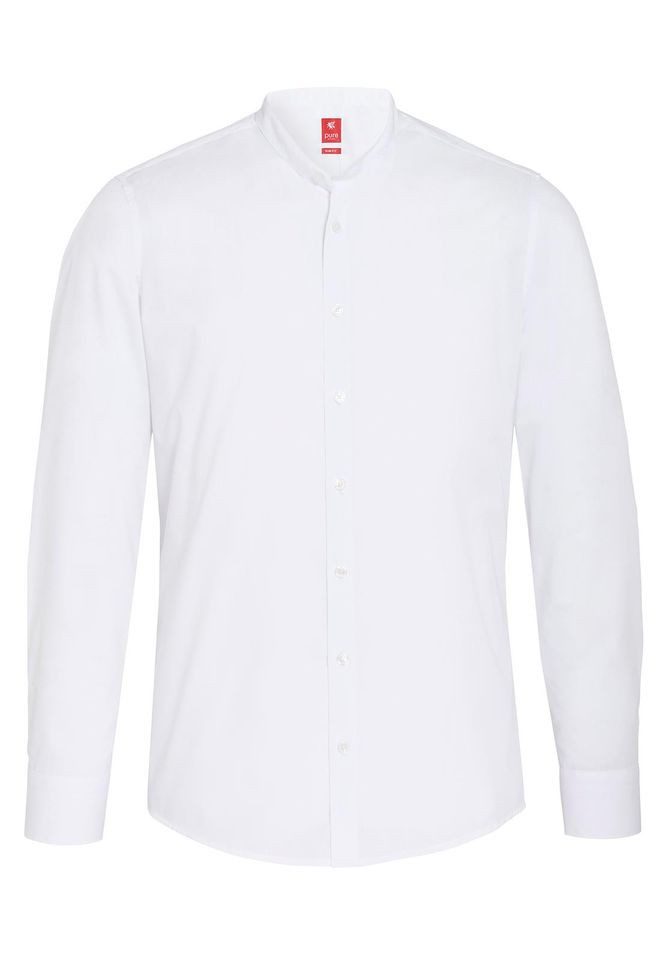 Modern, stilvoll und vielseitig: Dieses unifarbene Businesshemd von Pure kombiniert einen figurbetonten Slim Fit mit einem eleganten Stehkragen und wird so zum idealen Begleiter für geschäftliche wie auch private Anlässe.