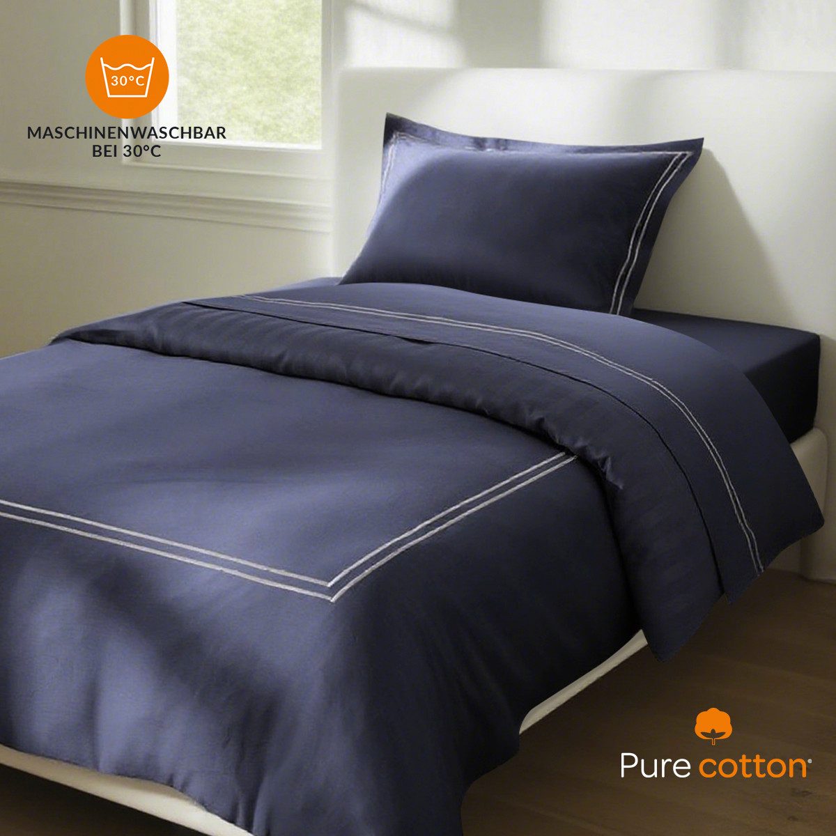 Pure cottom Bettwäsche Satin-Bettwäsche weiß/dunkelblau, 135x200 cm
