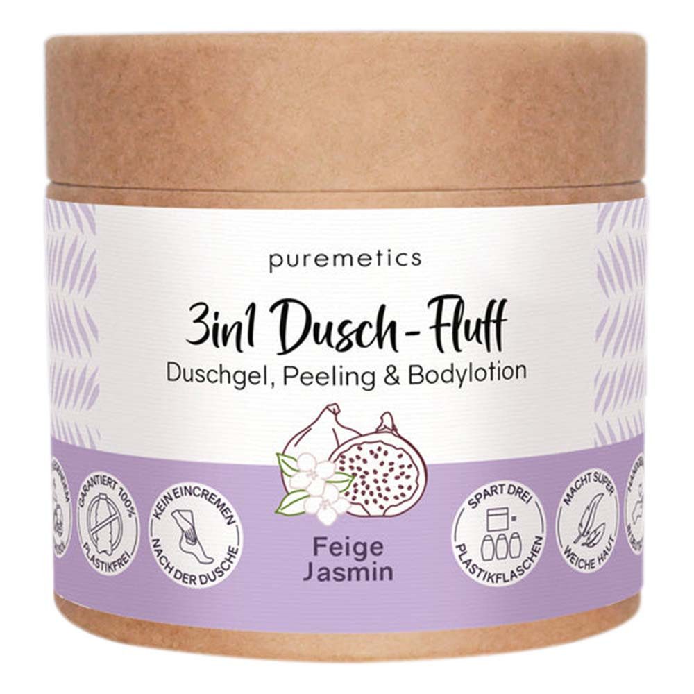 Der Dusch-Fluff wird sanft auf der feuchten Haut einmassiert und anschließend gründlich abgespült. Für die tägliche Anwendung geeignet.