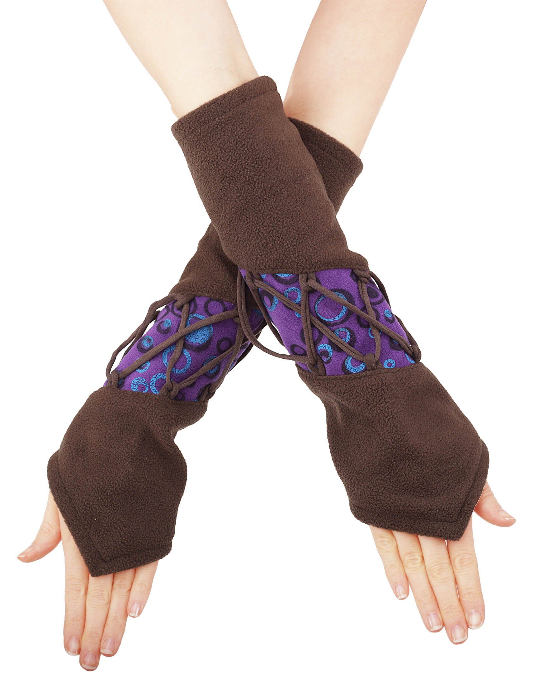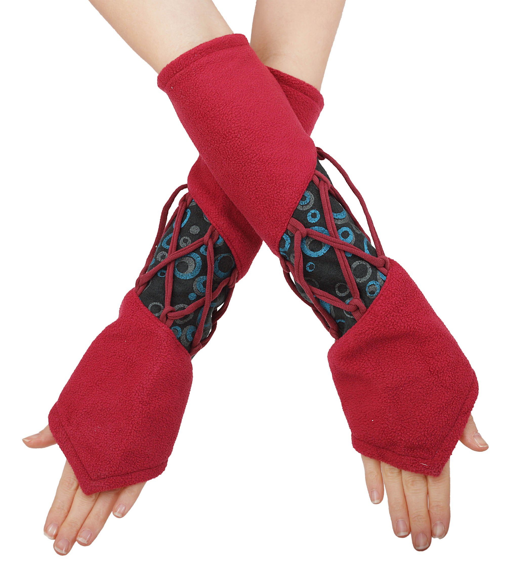 Die Armstulpen aus Fleece mit Schnürung können als Handwärmer bzw. Pulswärmer oder einfach nur als Blickfang getragen werden. In Sommer wie Winter. Der Stoff der Handstulpen ist flexibel, sie passen sich damit an durchschnittliche Armgrößen an. Die Einheitsgröße macht sie auch zur prima Geschenkidee. Die Handstulpen wurden in einer kleinen Firma in Nepal gefertigt.