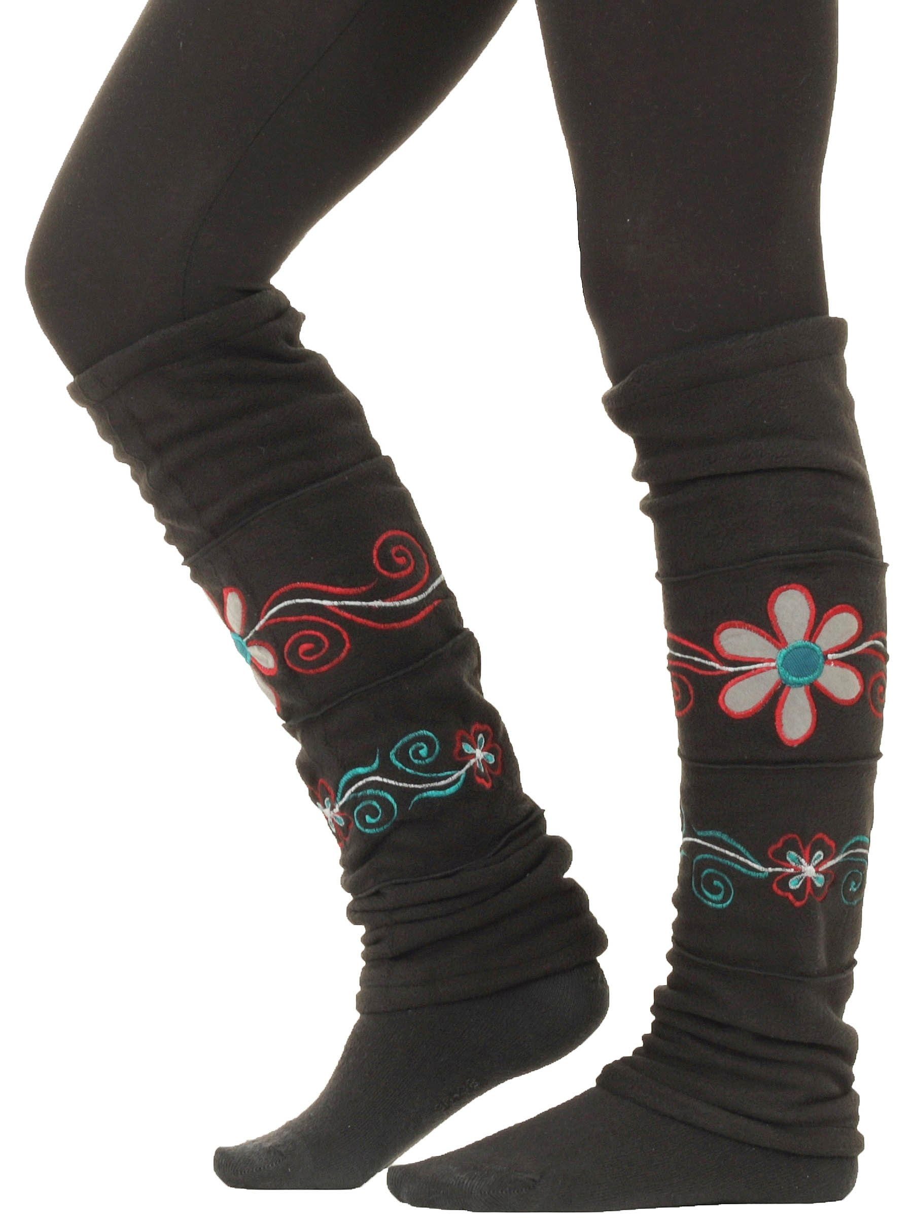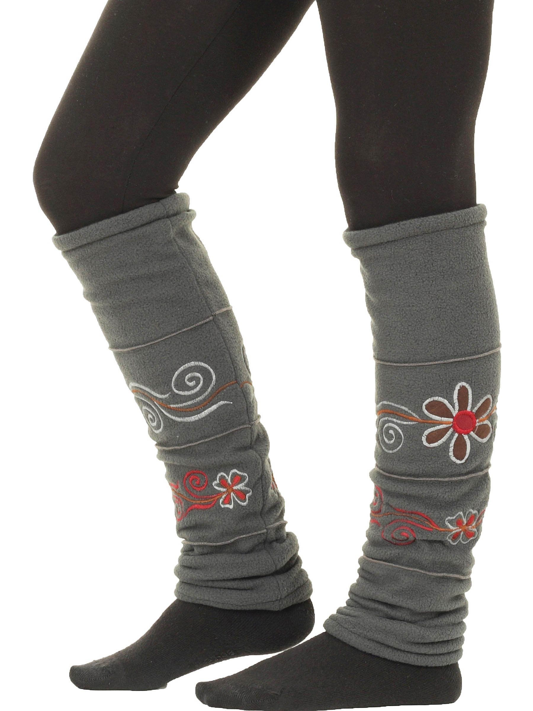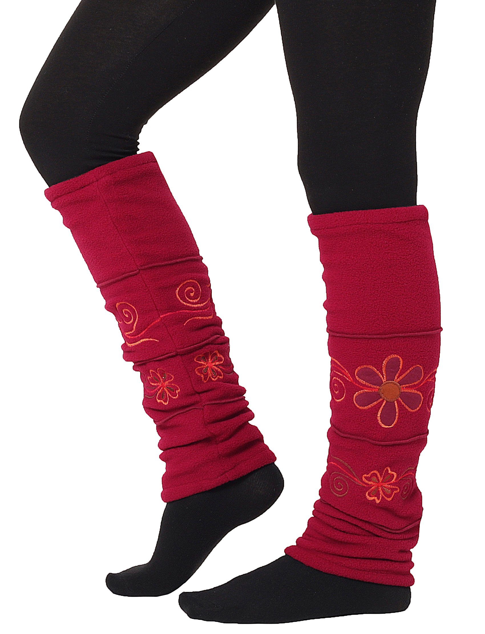 Die Beinstulpen aus Fleece mit bunter Stickerei sind Beinwärmer und Blickfang zugleich. Sie passen sich an durchschnittliche Beingrößen an und haben Einheitsgröße. Der Maximaler Wadenumfang beträgt ca. 30 cm. Der Umfang im oberen Bereich der Stulpen ist bis ca. 40 cm dehnbar.