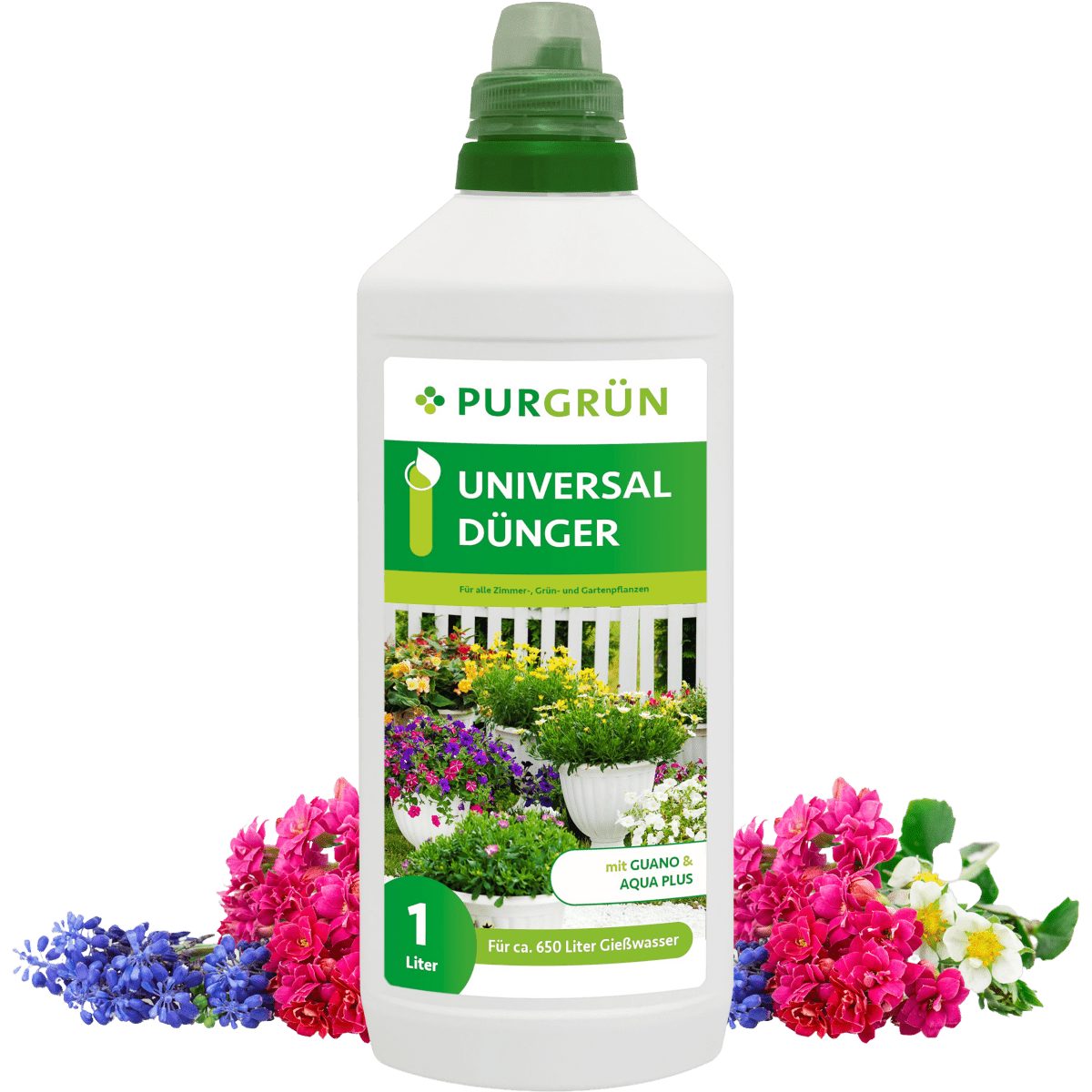 Dank der hohen Ergiebigkeit reicht eine 1-Liter-Flasche Purgrün Universaldünger für ca. 650 Liter Gießwasser.