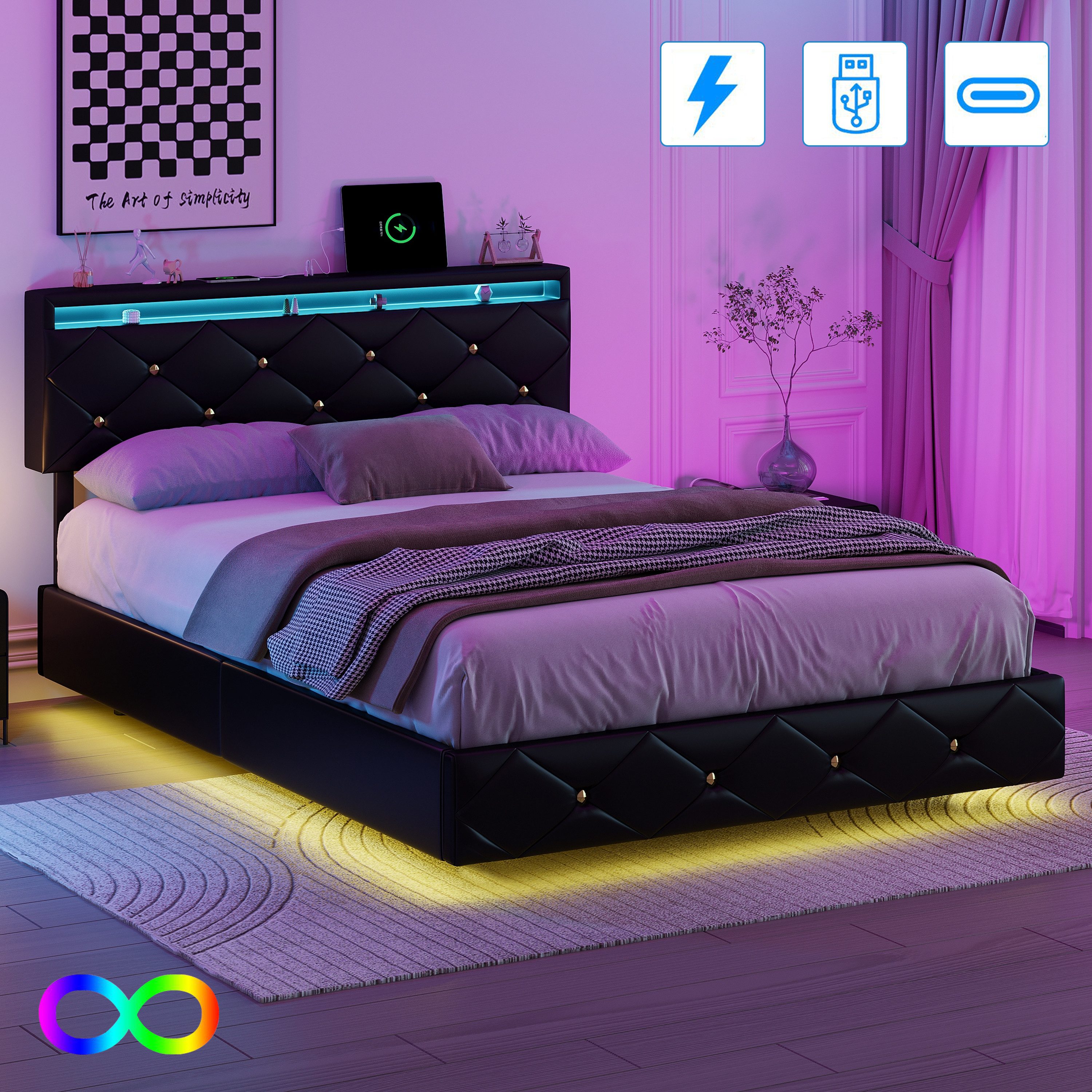 Schwebe-Effekt: Dieses Bettgestell mit versteckten Beinen vermittelt den Eindruck, dass es über dem Boden schwebt. Es bietet ein einzigartiges visuelles Erlebnis