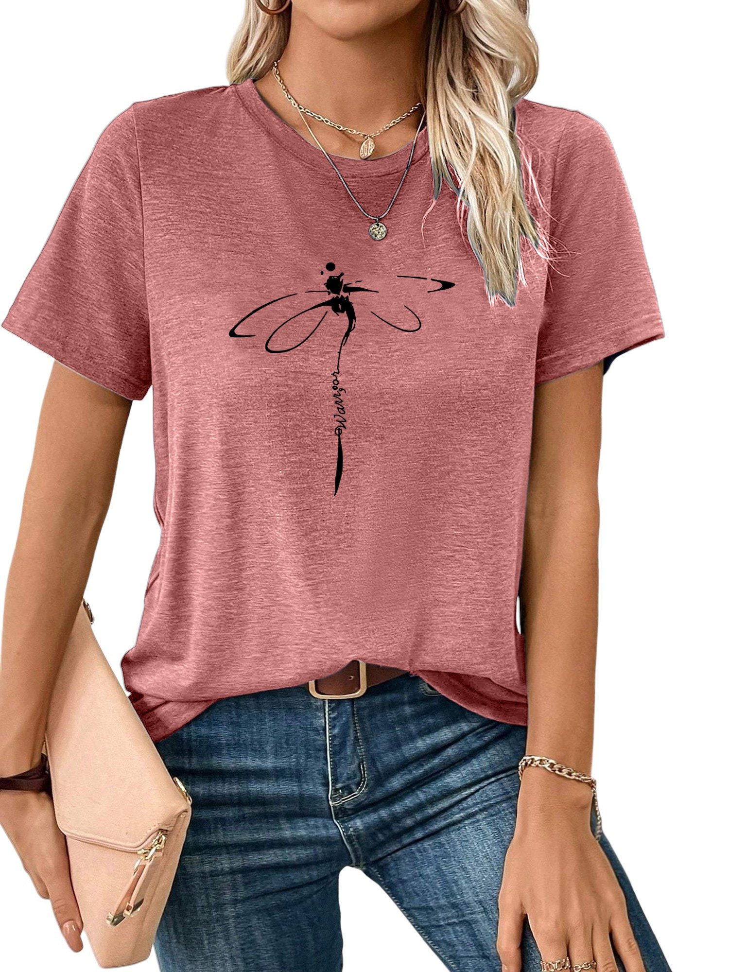 Vintage-inspiriertes und lustiges T-Shirt mit lockerer Passform und lustiger Libelle Grafik auf der Brust in lässiger Silhouette, überschnittenen Schultern, kurzen Ärmeln und Rundhalsausschnitt. Der einzigartige Grafik druck macht dieses T-Shirt stilvoll und schmeichelhaft.