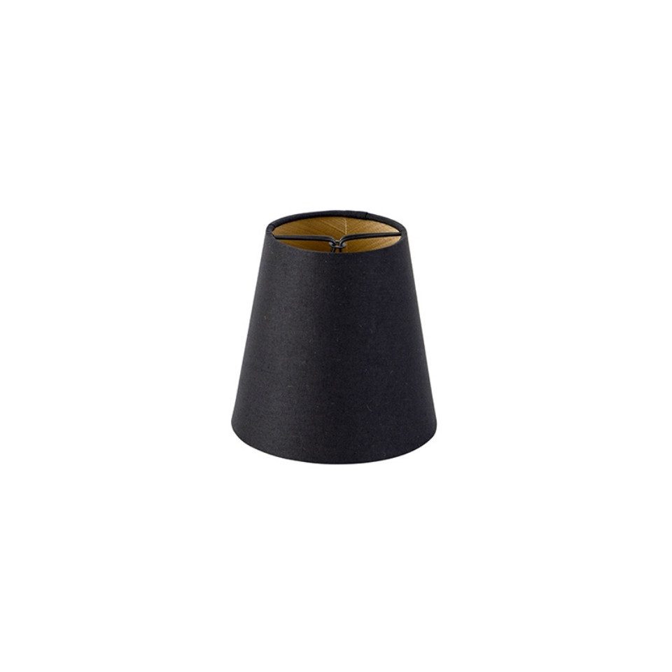 Suchst du schöne kleine schwarze Lampenschirme für einen Kronleuchter? Der kleine Lampenschirm ist mit einer praktischen Klammer ausgestattet. Du kannst diese Klammer leicht über die schmalen Kerzenlichter einer E14-Fassung schieben. Auf diese Weise passt jede Leuchte wunderbar in dein klassisches Interieur. Die kleiner konischer Klemmschirm besteht aus schwarzer Baumwolle. Das Innere ist golden. Er hat einen Durchmesser von 12 cm und ist 11 cm hoch. Geeignet für schmale E14-Lampen (Kerzenlichter).