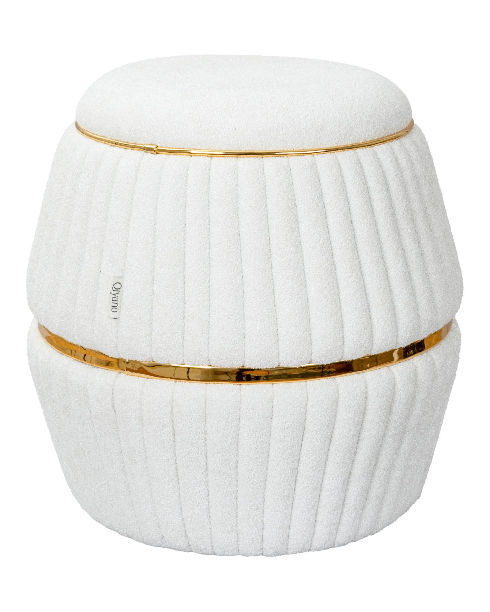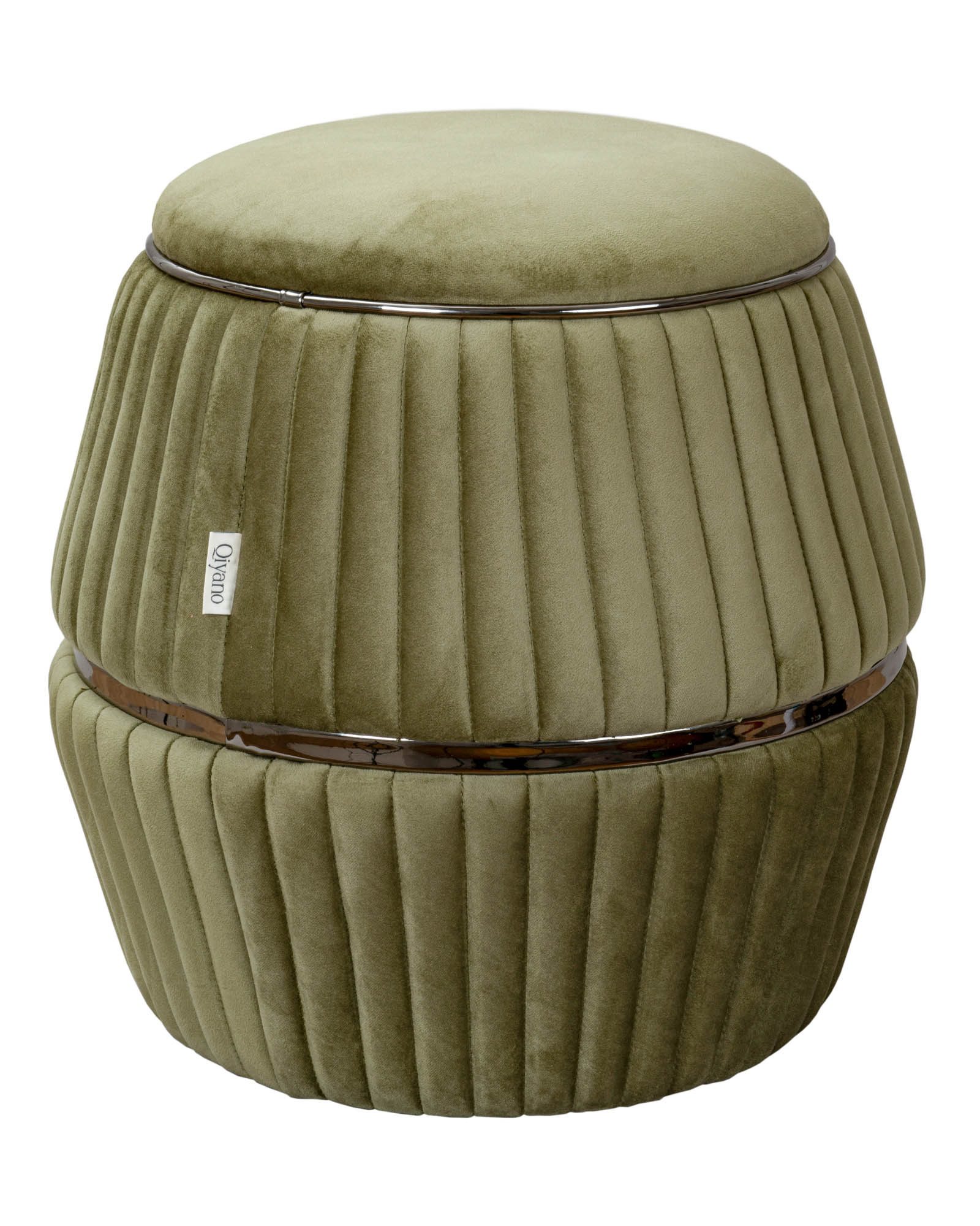Dieser stylische Pouf aus der Kollektion Ella ist ein Must-have für jedes Zuhause. Der Pouf ist für Innenräume geeignet und kann überall seinen Platz finden, sei es im Wohnbereich, Schlafbereich oder Büro. Der kleine Sitzhocker, der bis zu 160 kg hält, ist in vielen schicken Farben und Oberflächenmaterialien erhältlich. Verfügbar sind die Farben Grün, Beige, Taupe, Schwarz, Anthrazit und Weiß. Es ist also für jeden Geschmack und jede Inneneinrichtung eine komplementierende Farbe dabei. Außerdem gibt es in den verschiedenen Farbrichtungen vereinzelt die Ausführungen mit Samt-Stoff, Teddy-Stoff und einem Stoff mit gröberer Struktur. Sie können also selbst entscheiden, ob Sie ihr Zuhause mit einem weicheren Pouf mit Samt- oder Teddy-Stoff oder einem härteren, robusteren Stoff mit dem Stoff mit gröberer Struktur optisch aufwerten möchten. Все Obermaterialien bieten jedoch ein angenehmes Sitzgefühl und sind hochwertig verarbeitet. Steppnähte und ein Ring mit jeweils goldener oder silberner Farbe machen den Pouf zum Hingucker und verleihen einen glamourösen Look. Der Pouf ist einzigartig und je nach Farbgebung harmoniert der Pouf mit sanften Tönen oder stellt einen großartigen Farbtupfer in Ihrem Zuhause dar. Der Pouf ist ca. 53 cm hoch und wiegt nur ca. 10,25 kg. Die Poufs können daher nach Bedarf beliebig einfach verstellt werden und passen perfekt in jeden Bereich Ihres Wohnraums.