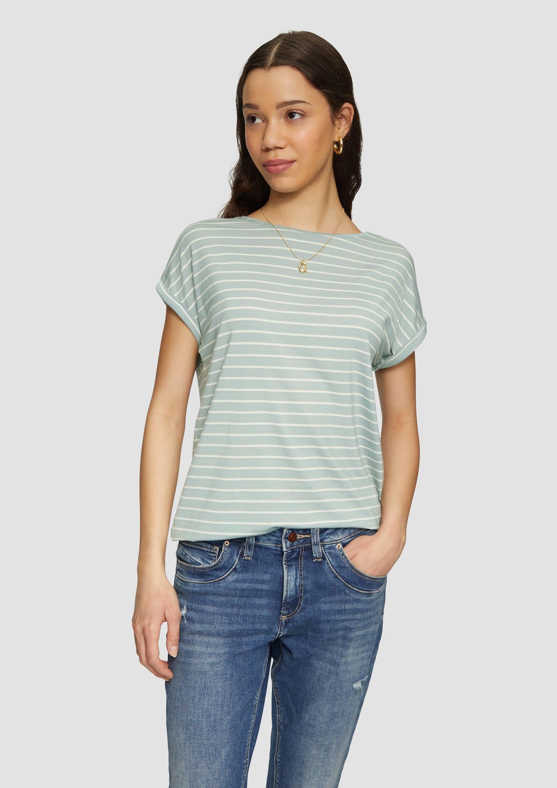 Das Kurzarmshirt von QS bildet die Grundlage für jedes stilsichere Outfit. Die kurzen Ärmel enden in einem Aufschlag. Dieses Shirt hat einen Rundhalsausschnitt mit Rippbündchen und ist hüftlang sowie locker geschnitten, sodass du dich wohlfühlst.