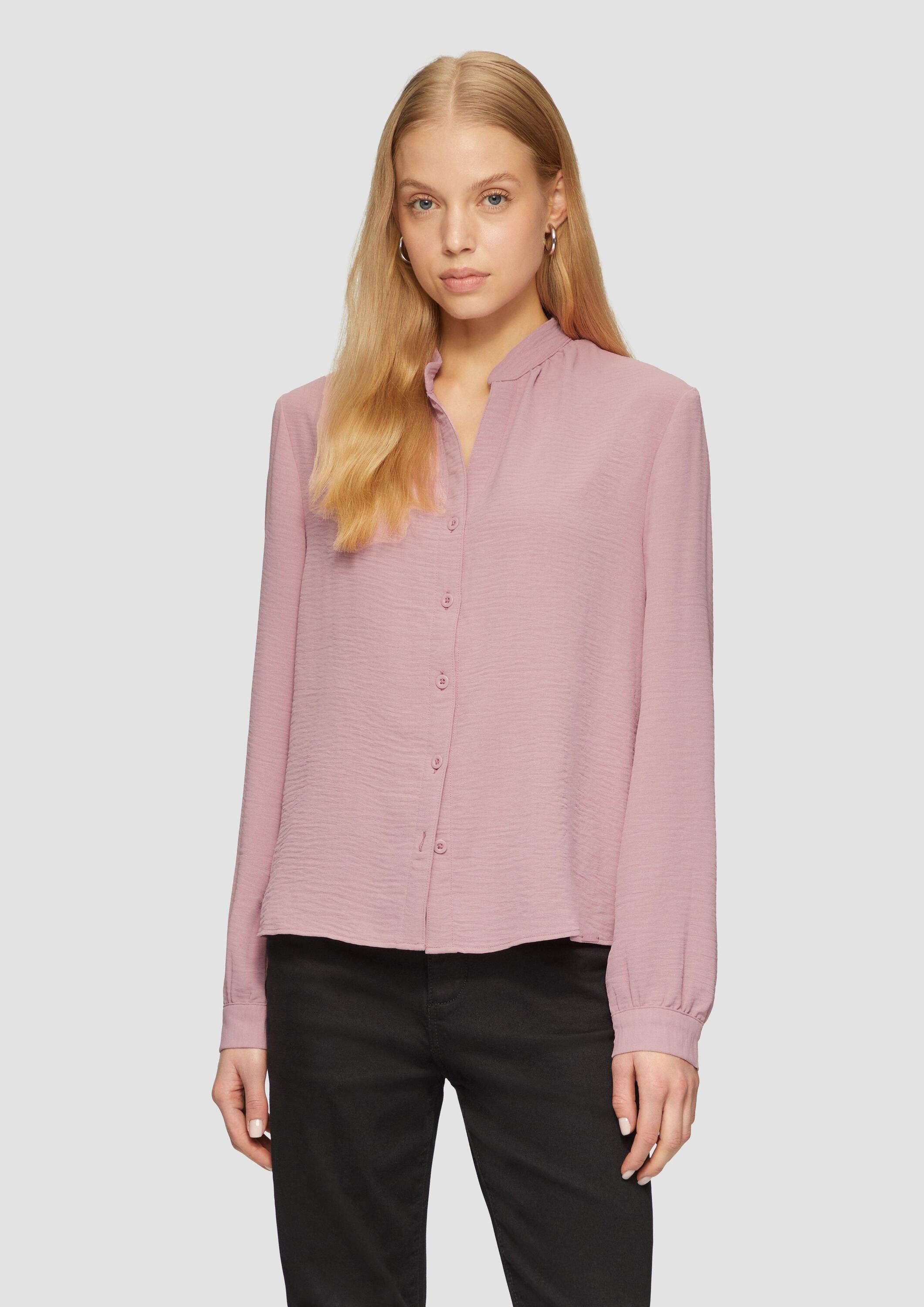 Mit der Langarmbluse von QS stellst du im Handumdrehen ein neues Outfit zusammen. Der Stehkragen wird nicht umgeschlagen, liegt am Hals an und ist eine Grundlage für toughe Outfits. Die langen Ärmel enden in einer Manschette. Diese Bluse ist taillenbedeckend sowie basic geschnitten, sodass dein Oberkörper dezent in Szene gesetzt wird.