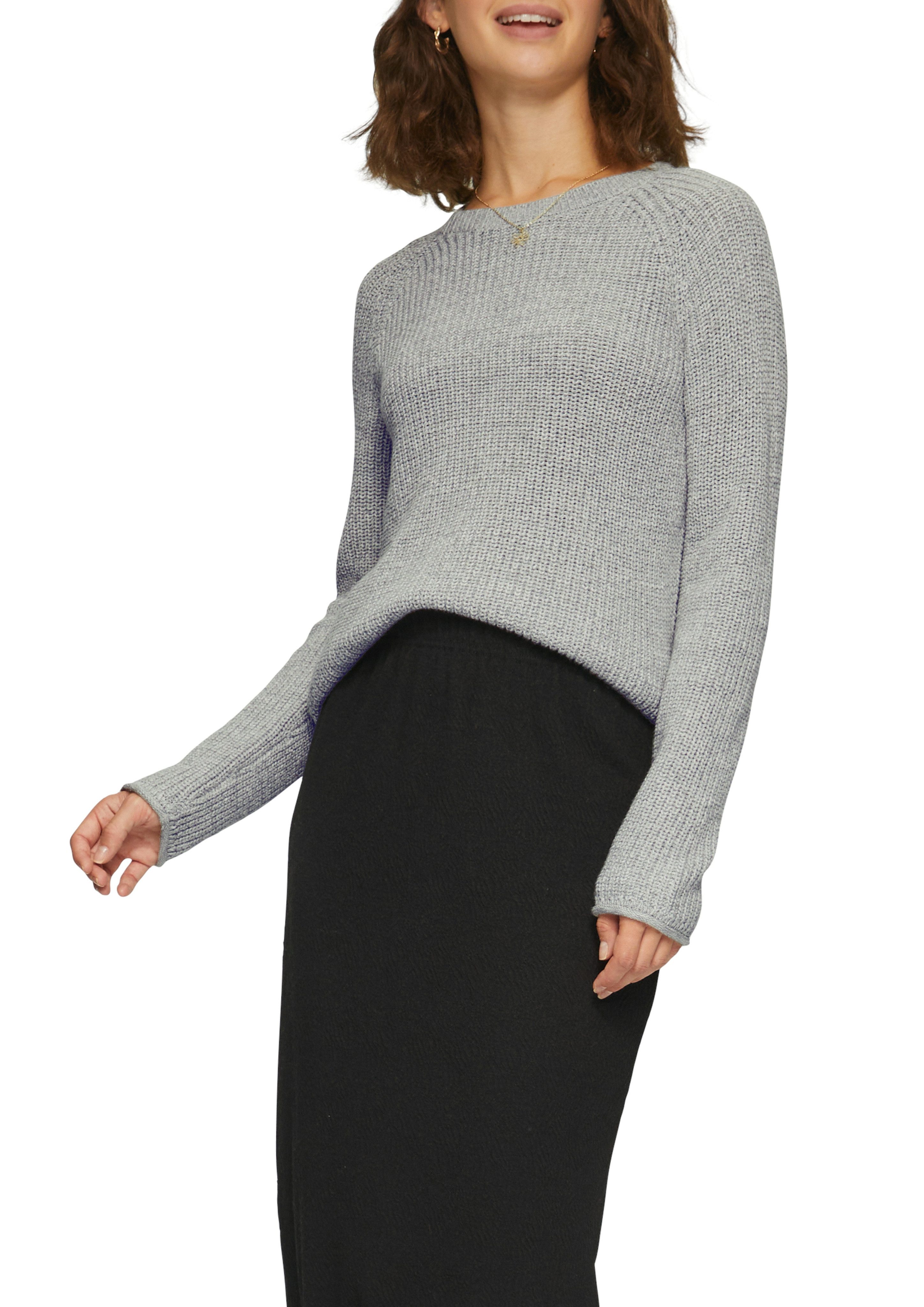 Der Strickstoff aus Baumwollmischung hält dich warm und ist auch sehr bequem. Lege den Pullover zum Trocknen an der Luft auf den Wäscheständer, statt ihn aufzuhängen. So behält er seine Form und verzieht sich nicht.