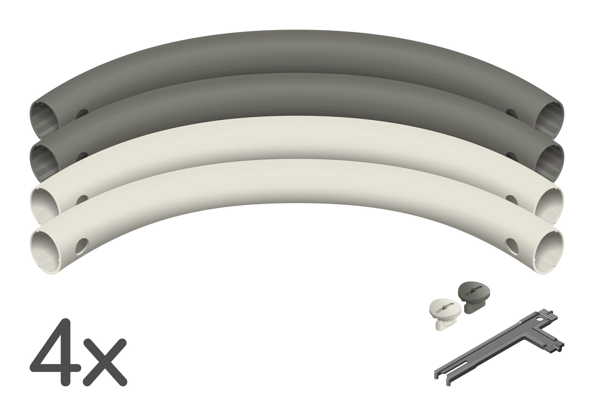Das Bogenrohrset Home beinhaltet 4 Bogenrohre sowie die für die Montage benötigten 8 Rohrschrauben und einen Schlüssel.
