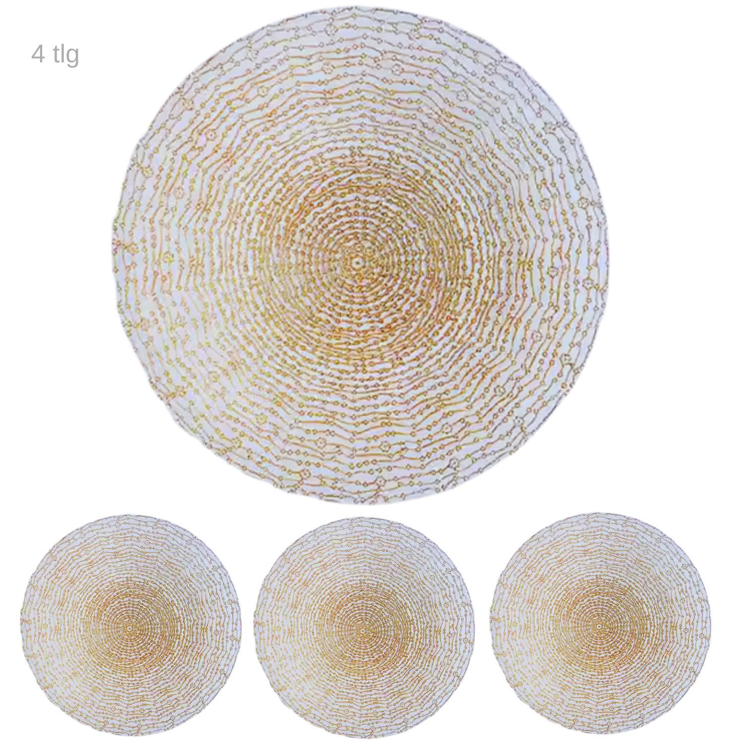 Verleihen Sie jedem Dinner ein Hauch von Luxus: Dieses 4er Set großer Glas-Teller (Ø 32,6 cm) vereint modernes Design mit zeitloser Eleganz. Die hochwertige Glasstruktur und das klare Finish machen diese Teller zum Blickfang auf jeder festlich gedeckten Tafel – ideal für besondere Anlässe, elegante Dinnerpartys oder einfach für stilvolles Alltagsessen. Ob als Essteller, für Vorspeisen, Plattenarrangements oder als Servierunterlage – diese Teller setzen jedes Gericht perfekt in Szene. Stabil, vielseitig einsetzbar und pflegeleicht – für Gastgeber:innen mit Stil.
