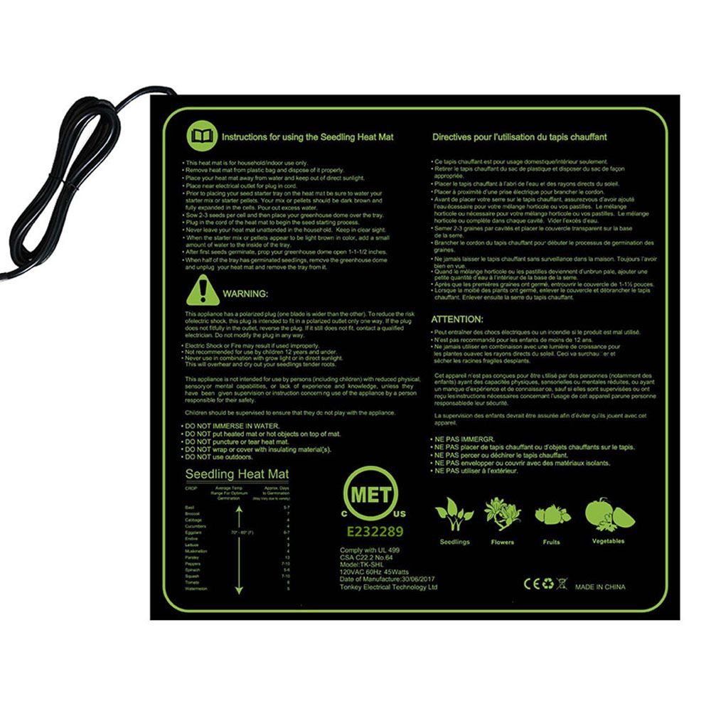 Schöne, niedrige Wärme hält alles auf der richtigen Temperatur. Das ist effizienter als der Versuch, ein ganzes Gewächshaus oder einen Schuppen zu heizen, und beschleunigt das Pflanzenwachstum und die Samenkeimung. Und Sie können aus Samen eine größere Pflanzenvielfalt gewinnen, und das zu einem günstigeren Preis, als wenn Sie alle Setzlinge in der Gärtnerei kaufen würden. Zu Ihrer Bequemlichkeit sind Anweisungen auf die Oberfläche gedruckt.