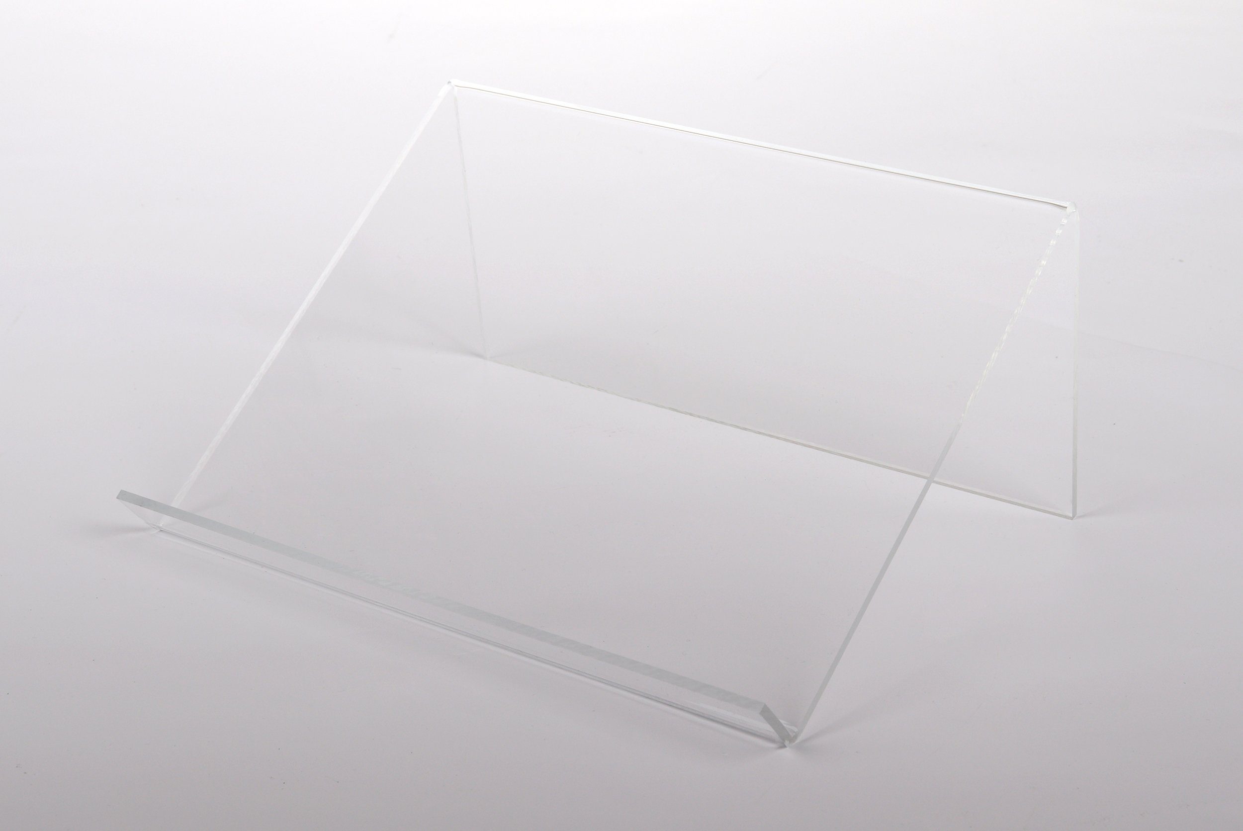 GUT AUFGESTELLT! Buchständer aus Acryl verführen zum Hinschauen Acrylglas-Buchstützen von queence sind nützliche Helfer und vielseitig einsetzbar! Ob als Bücherpult, Tablet- und Kochbuchhalter oder einfach nur als Buchständer ob für die Küche, das Büro, im Kinderzimmer oder zum Lesen im Bett: Unsere Buchstützen aus Acrylglas passen sich den Anforderungen an und sehen auch noch gut dabei aus. Nichts fällt mehr um, nichts klappt zu! Der stabile Buchständer ist sowohl für große Bücher, Bildbände oder Kataloge geeignet. Gefertigt aus hochwertigem Acrylglas in einer Materialstärke von 4 mm. Made in Germany! Natürlich sind die Acrylständer auch im professionellen Bereich vielseitig Einsetzbar und Ideal geeignet für die Platzierung Ihrer Bücher und Exponate im Theken- und Tresenverkauf, im Schaufenster oder in der Vitrine. Der ringsum offene Absatz ermöglicht die Präsentation von dickeren Büchern auch in breiteren Überformaten. Optimal als Präsentationsdisplay z.B. als Buchstütze, aber auf Grund des offenen Absatzes auch als Warenständer (Warenstütze) geeignet. Acrylglas ist der am besten geeignete Werkstoff für Buch- und Warenstützen, weil er das Produkt niemals verdeckt. Der Buchaufsteller aus 4 mm dickem Acrylglas ist in verschiedenen Größen erhältlich. HINWEIS: Dekorationsgegenstände im Anwendungsbeispiel sind natürlich nicht im Kaufpreis enthalten. queence - Enjoy life!