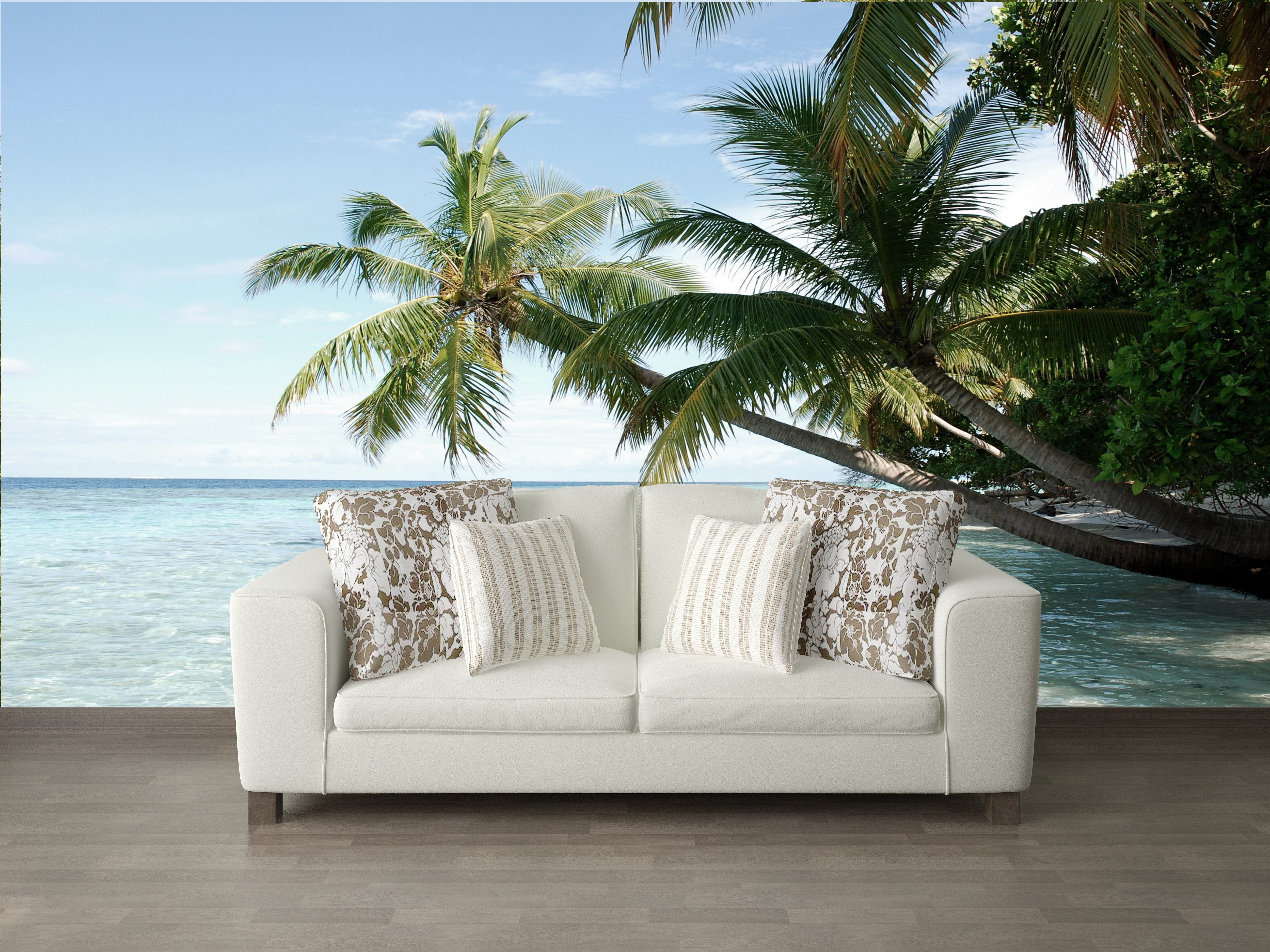 Motiv | Himmel Meer Palmen Strand Südseeinsel Wolken |