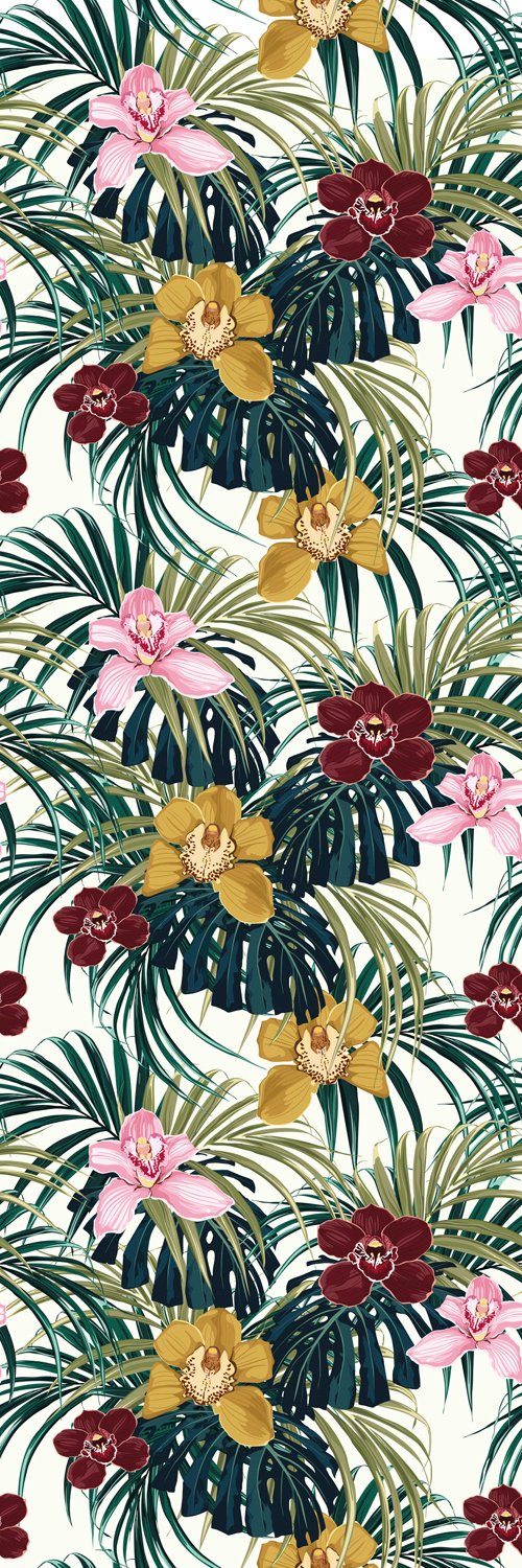 queence Vinyltapete Alisha, glatt, Motiv, bedruckt, botanisch, floral, gemustert, natürlich, 90x250cm, selbstklebend, kinderleichte Anbringung, Sticker