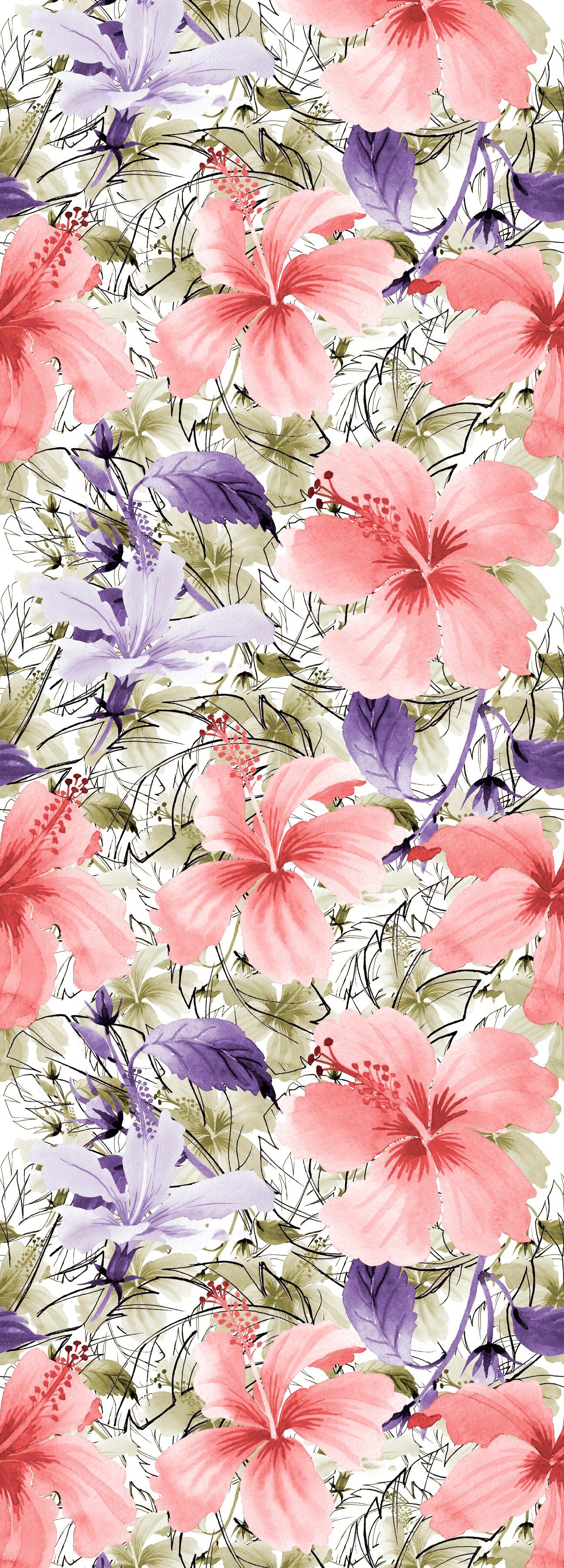 queence Vinyltapete Bathia, glatt, Motiv, bedruckt, botanisch, floral, gemustert, natürlich, 90x250cm, selbstklebend, kinderleichte Anbringung, Sticker