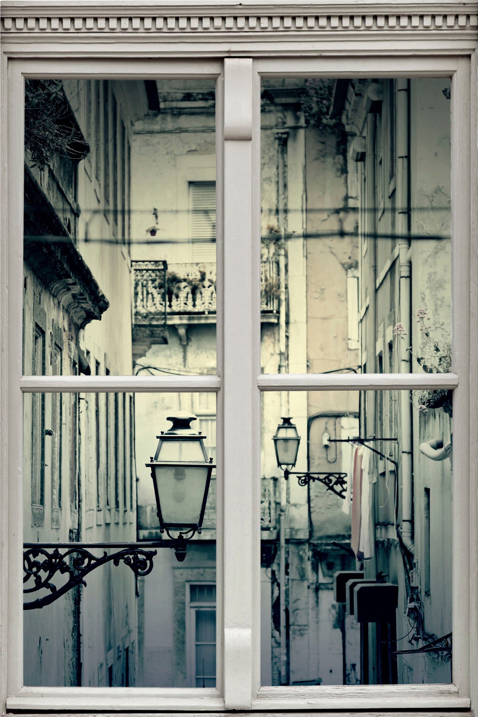 Bringt mit seinem reizvollen Motiv südländisches Flair in das Zuhause: der Wandsticker »Häuserwände« aus dem umfangreichen queence Меню. Auf dem Bild in bewusst reduzierten Farbtönen sind eng aneinander stehende Häuser mit kleinen Balkonen sowie rustikale Straßenlaternen zu sehen. Der aufgedruckte Rahmen weckt die Illusion eines zusätzlichen Fensters im Raum, sodass beispielsweise im fensterlosen Bad ein reizvoller Effekt entsteht. Gefertigt wird die hochwertige Wanddekoration aus selbstklebender Folie, die auf verschiedenen Untergründen haftet. Dazu zählen staubfreie Wände, Fliesen, Türen und vergleichbar glatte Flächen. Ob im Wohn- und Schlafbereich oder im Esszimmer und der Küche: Der reizvolle Wandsticker »Häuserwände« von queence punktet mit südländischem Charme.