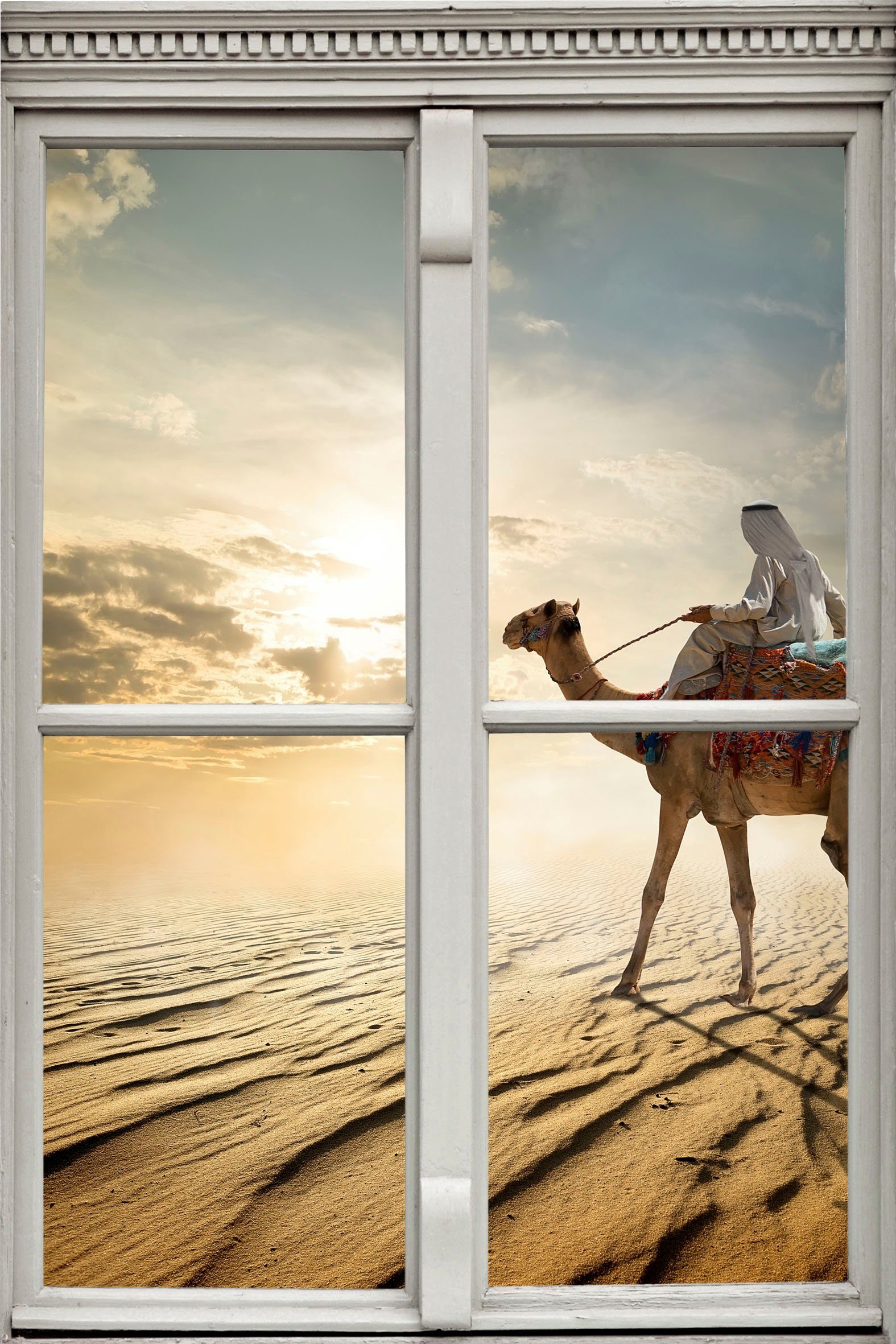 queence Wandsticker Kamel in der Wüste, Wandsticker, Wandbild, selbstklebend, 3D, Fenster