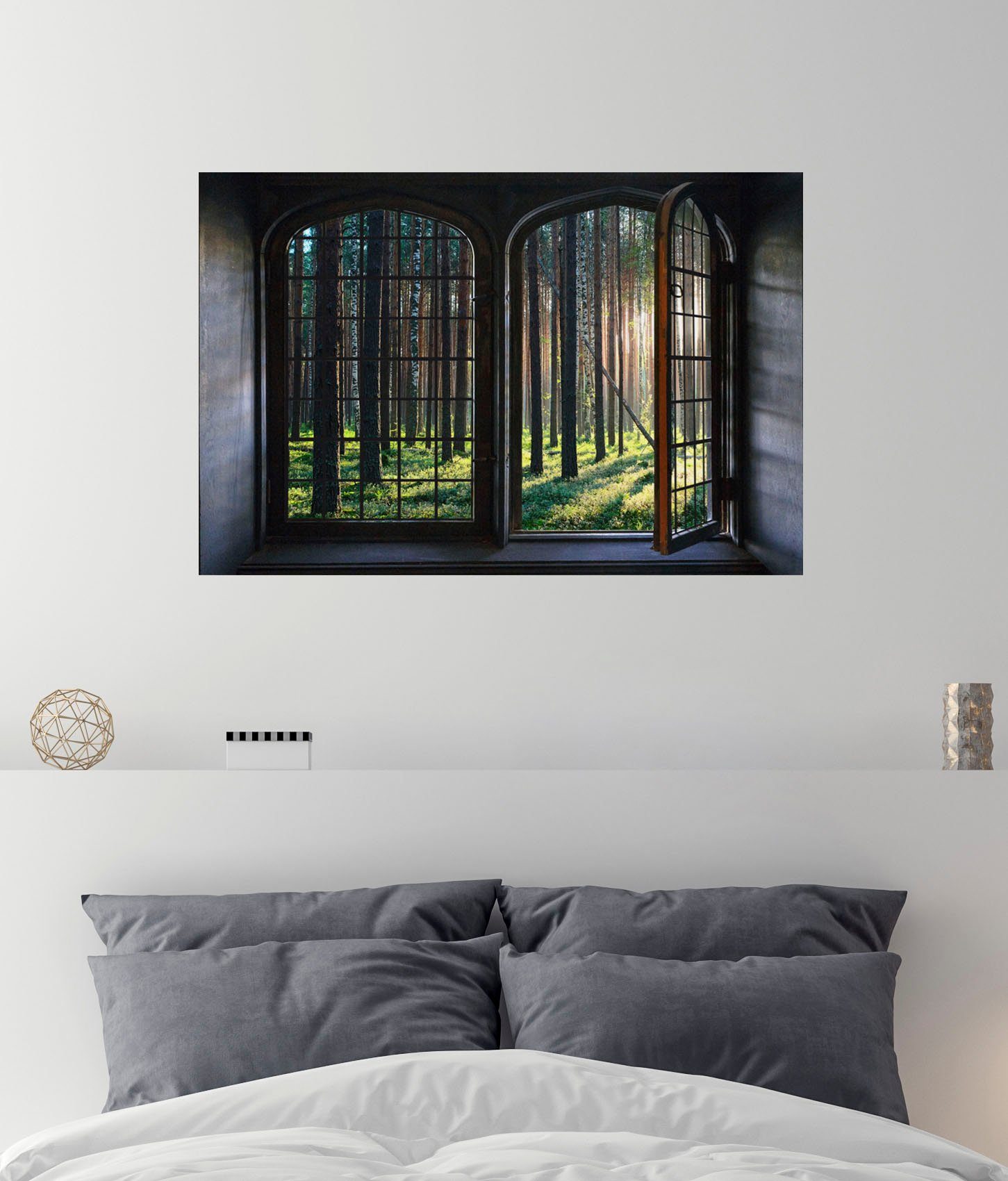 queence Wandsticker Wald, Wandsticker, Wandbild, selbstklebend, 3D, Fenster