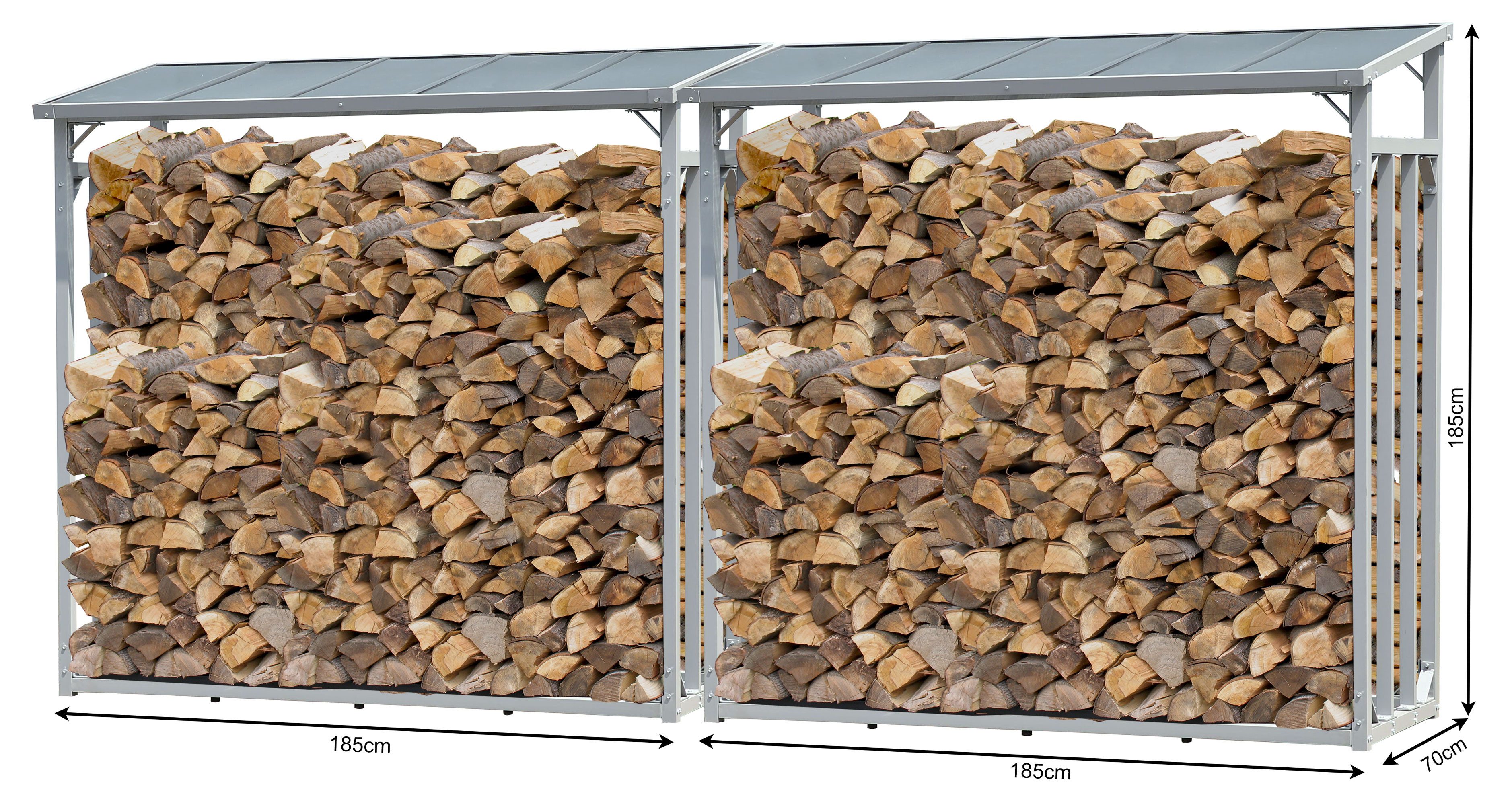 Jetzt können Sie Ihr Kaminholz auch elegant aufstapeln. Zum Schutz Ihres Holzes liefern wir Ihnen hier den perfekten Unterstand.