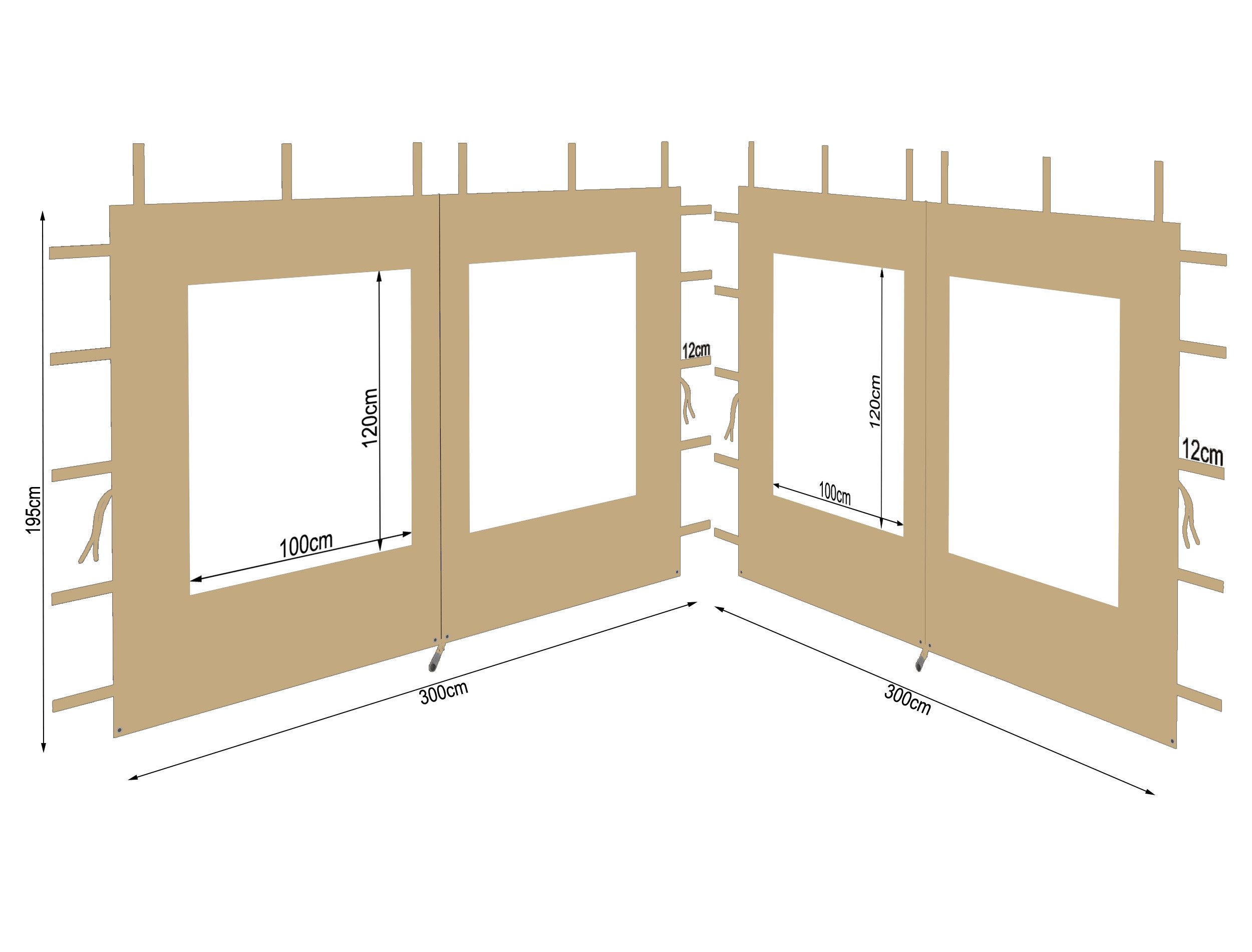 Hinweis Maßangaben | Maße BxH: ca.300x195cm pro Seitenwand |