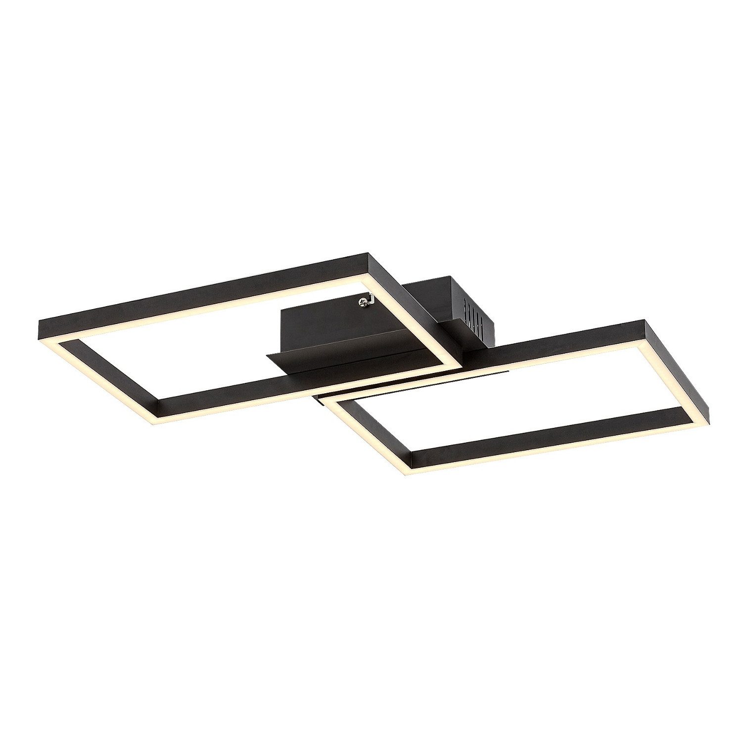 Die für den Einsatz in modernen Wohnräumen konzipierte intelligente Deckenleuchte Ludano mit ihrer kantigen Form ist nicht nur wegen ihres kreativen Designs, sondern auch wegen ihrer zahlreichen Zusatzfunktionen beliebt. Das aus Metall gefertigte schwarze Modell wird durch einen weißen runden Kunststoffschirm ergänzt und kann mit einem quadratischen Dekosockel an der Decke befestigt werden.