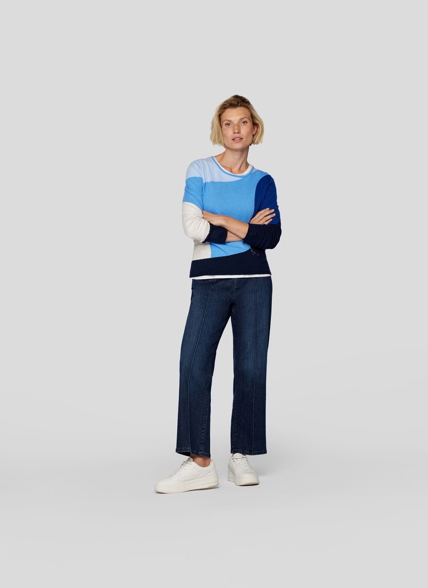 Klassischer Rundhalspullover von Rabe mit langem Ärmel in Blau/Blau/Weißer Musterung