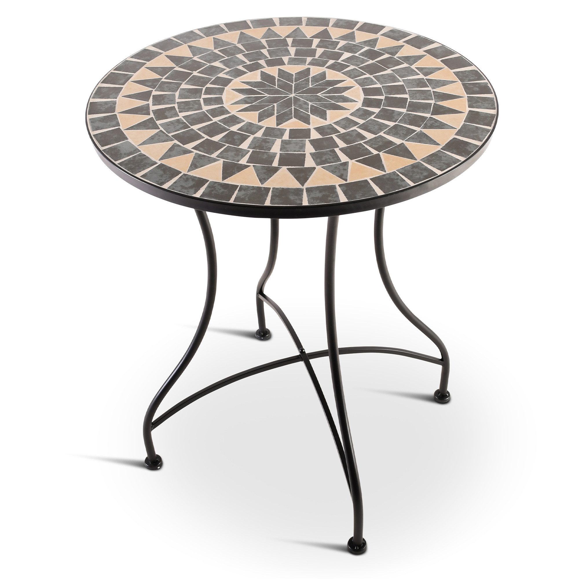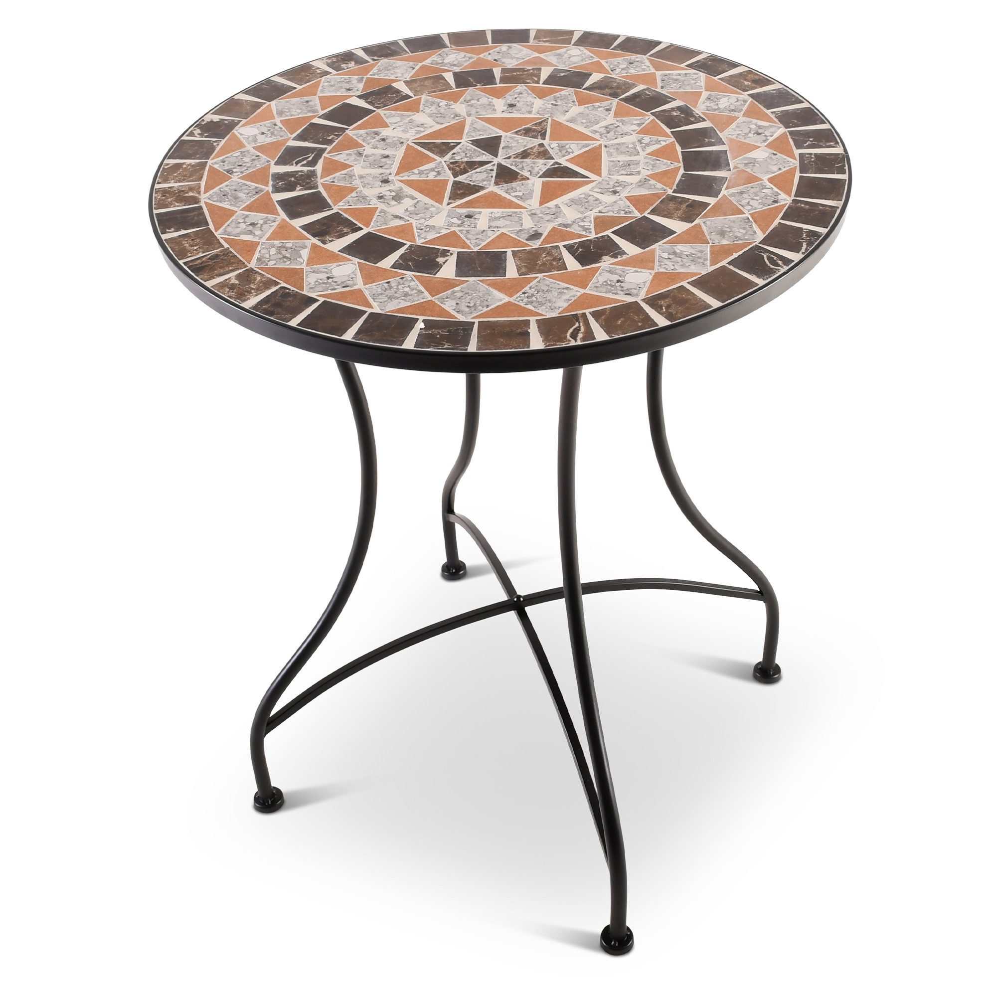 Ob als stilvoller Balkon- oder Terrassentisch, eleganter Kaffeetisch oder dekoratives Highlight im Garten – der runde Tisch mit filigranem Mosaikmuster setzt in jedem Außenbereich dekorative Akzente. Das massive Metallgestell sorgt für Stabilität, während die naturbelassene Oberfläche aus einzelnen Fliesen jedes Modell zum Unikat macht.