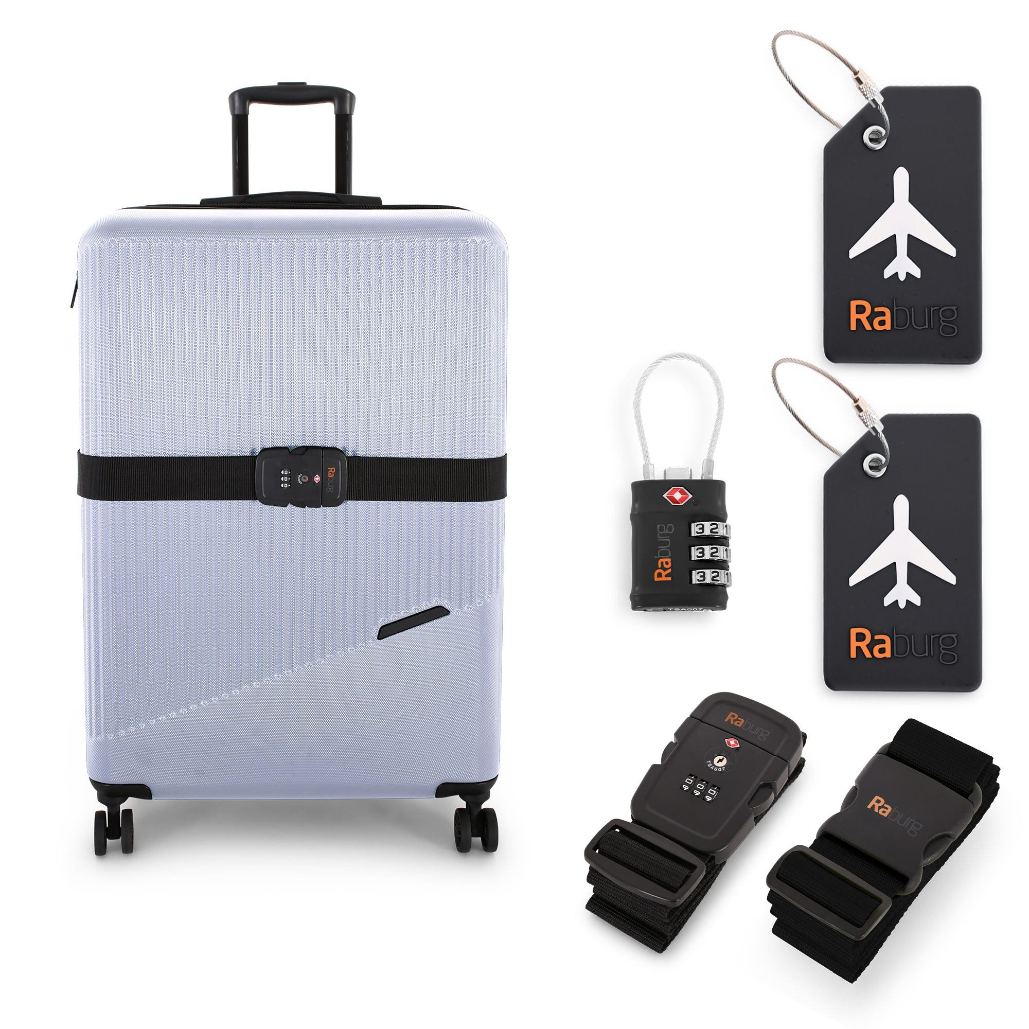 Mit dem Raburg Reiseset reist du sicherer und übersichtlicher – ob Flugreise, Kreuzfahrt oder Business-Trip. Je nach Варианты erhältst du eine clevere Kombination aus verstellbaren Koffergurten (mit und ohne TSA-Schloss), Kofferanhängern mit Namenszeile sowie TSA-Zahlenschlössern. TSA-zertifizierte Komponenten können bei Sicherheitskontrollen kontrolliert geöffnet und wieder verriegelt werden – ohne Beschädigung deines Gepäcks.